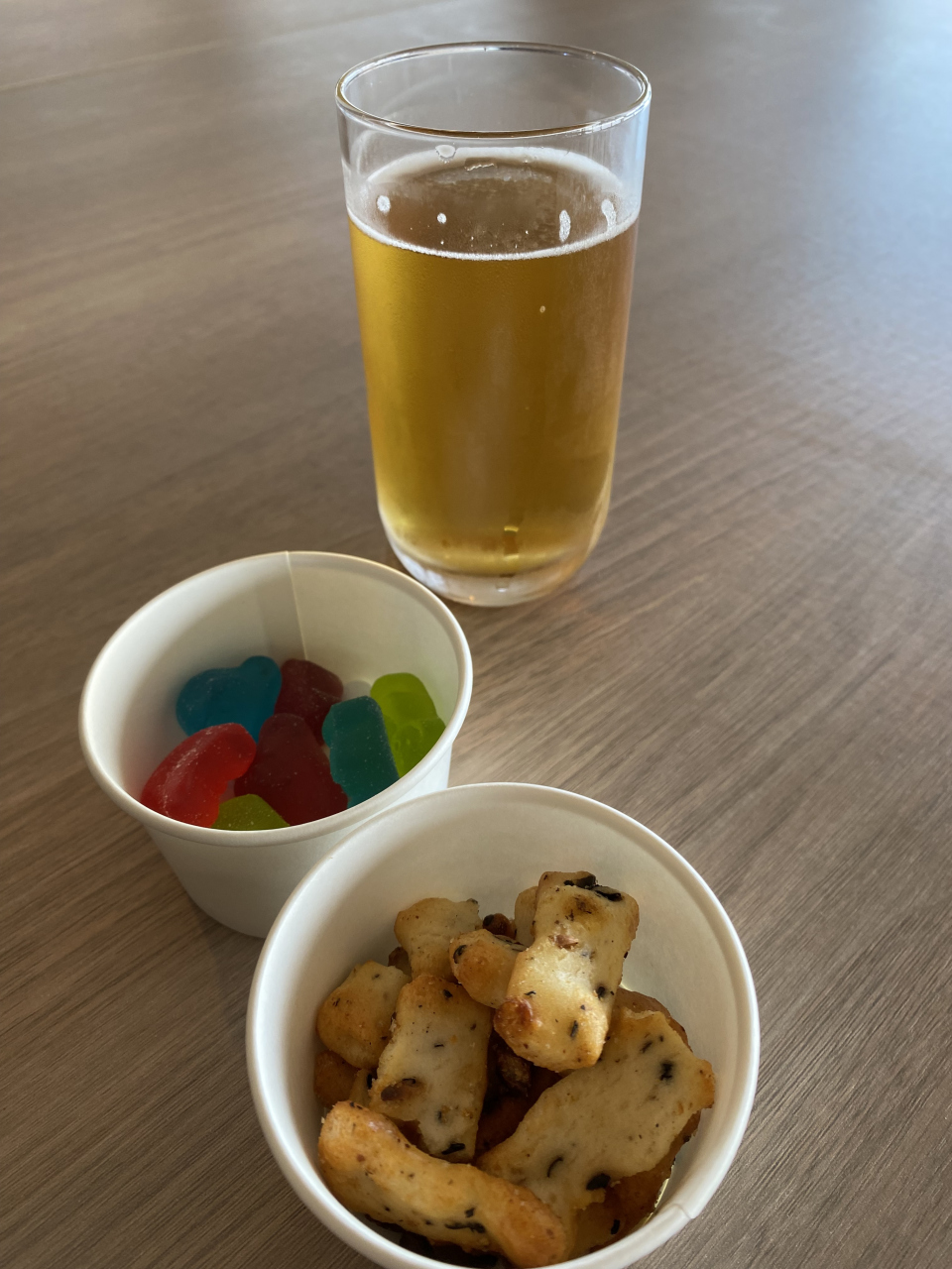 おつまみになるおやつが数種類あって、グミやラムネ、お酒に合いそうなナッツや塩っぱいスナックがありました。