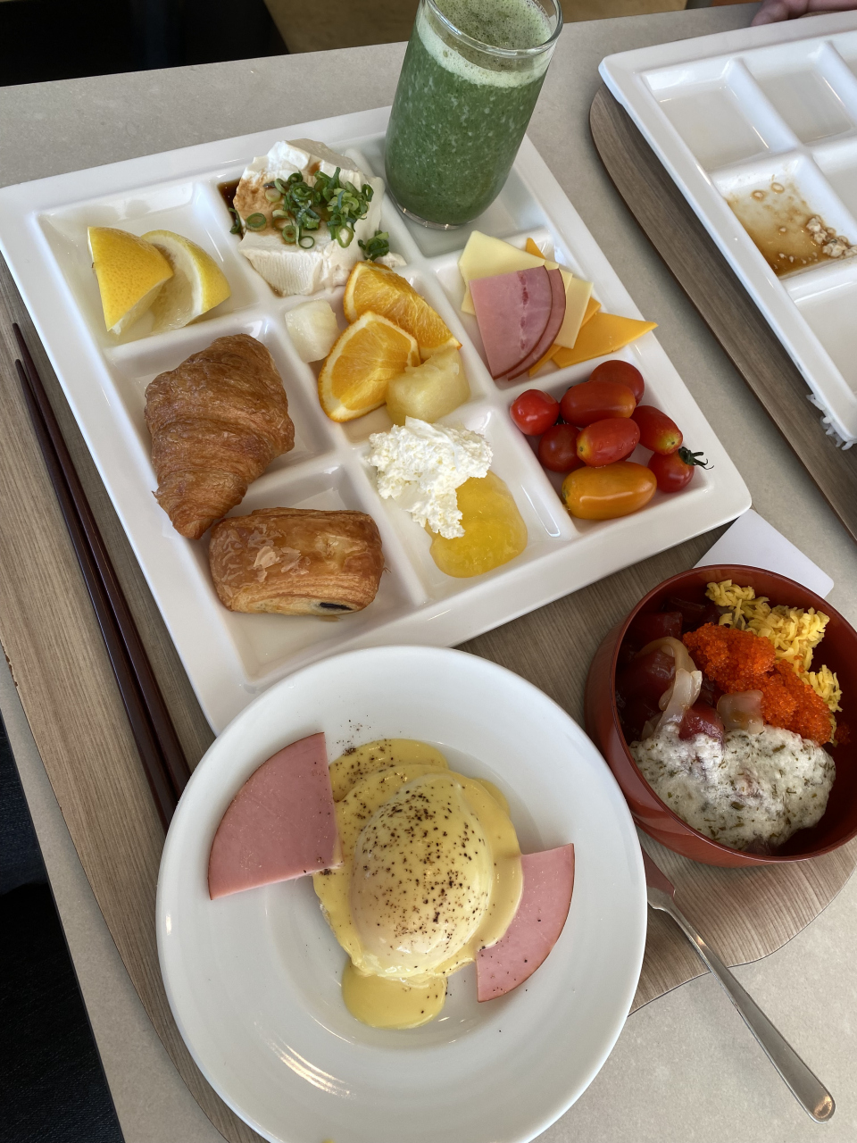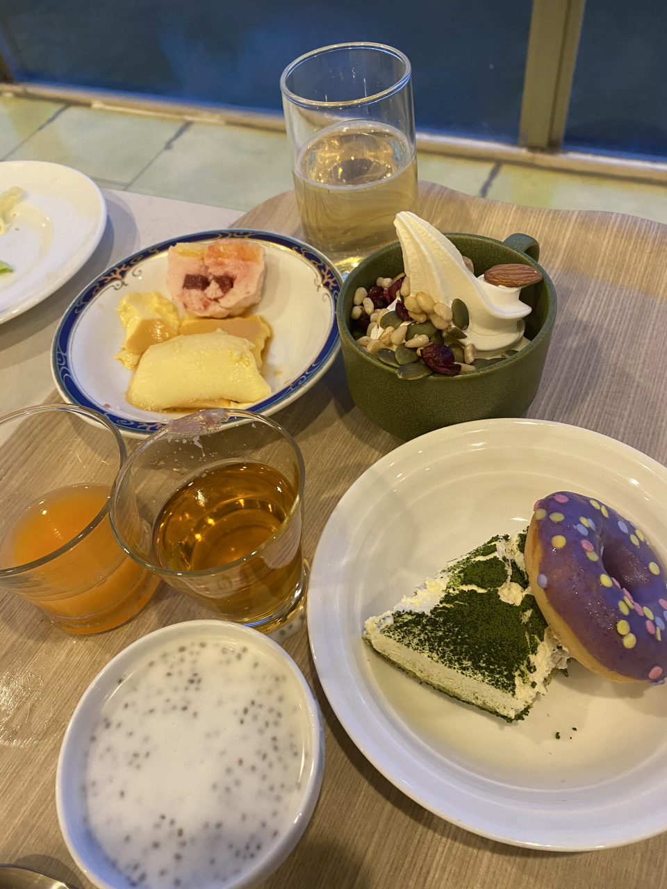 夕食はブッフェスタイルで飲み放題。品数は多くデザートも満足いくものでした。