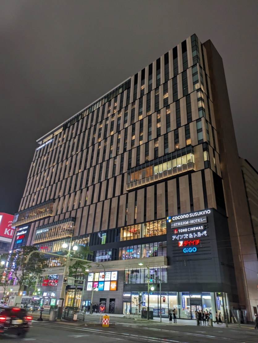 札幌薄の交差点に位置し飲食や観光などにはこれ以上ないロケーションです。ホテルも東急グループの国内2番目のストリームホテルで最新型のパッケージのホテルです。竣工してまだ2年なので新しく魅力あります。最大の特徴はココノススキノという商業施設が併設され買い物とシネマとホテルが融合というアーバンリゾートが体験できる点です
