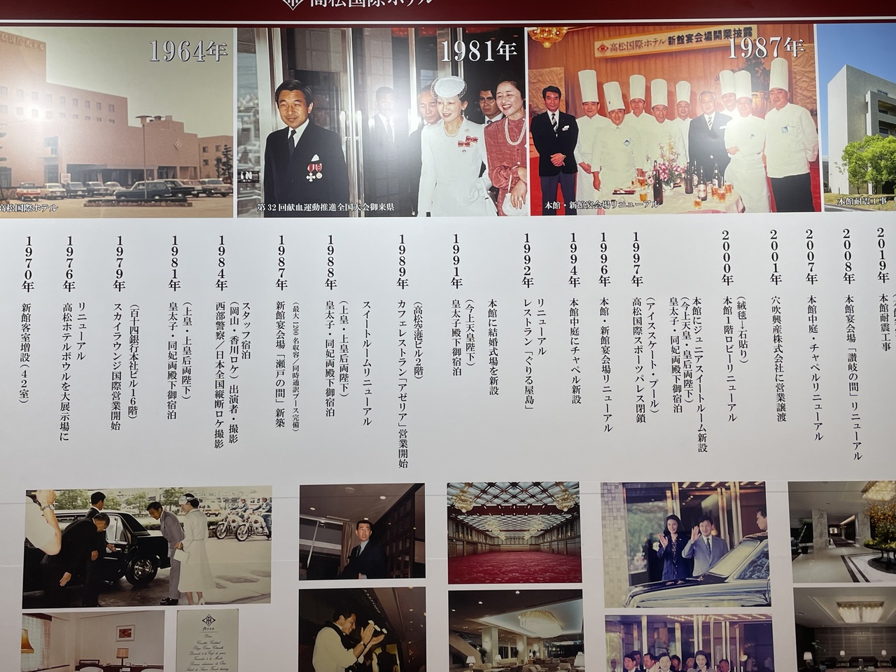当日は創業60周年記念式典をされていたらしく、パーティーのお客さんで賑わっていました。ロビーには当時の天皇家の方々や、西部警察のロケの写真も飾られていました。