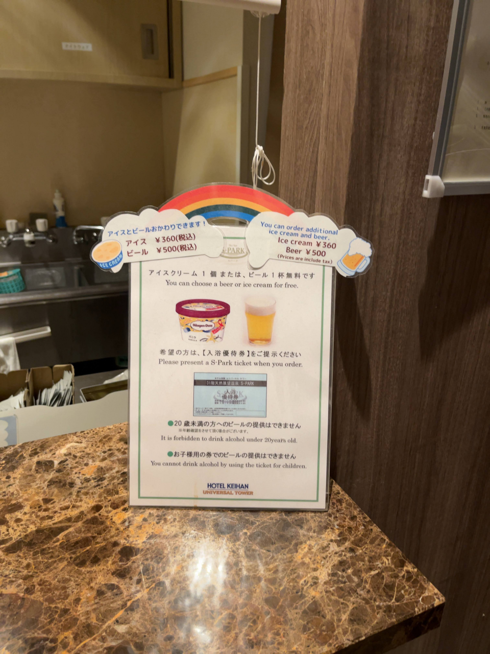 屋上のお風呂は朝晩フル活用させて頂き、ドリンクチケットでは2泊ともビールを頂きました。