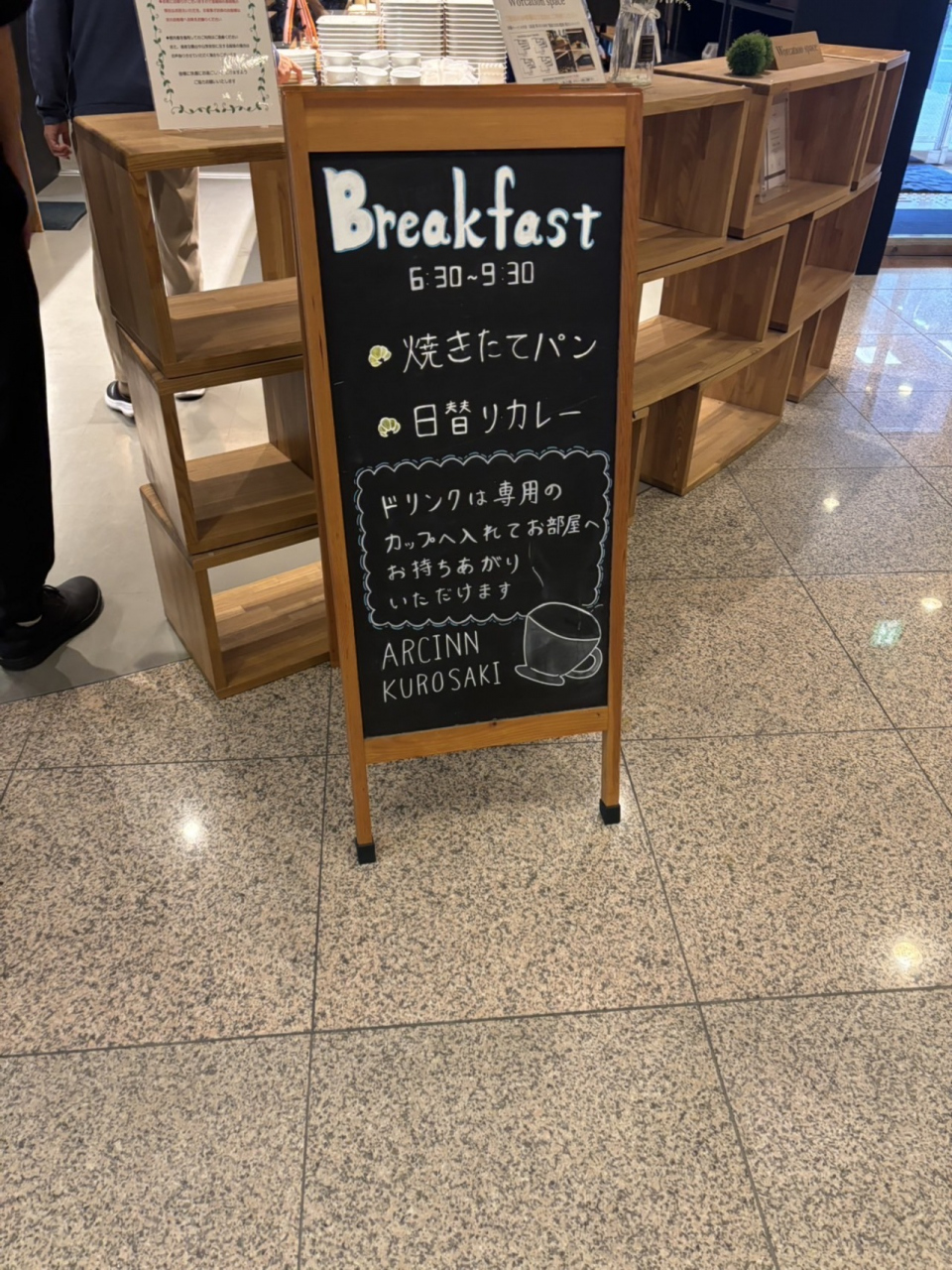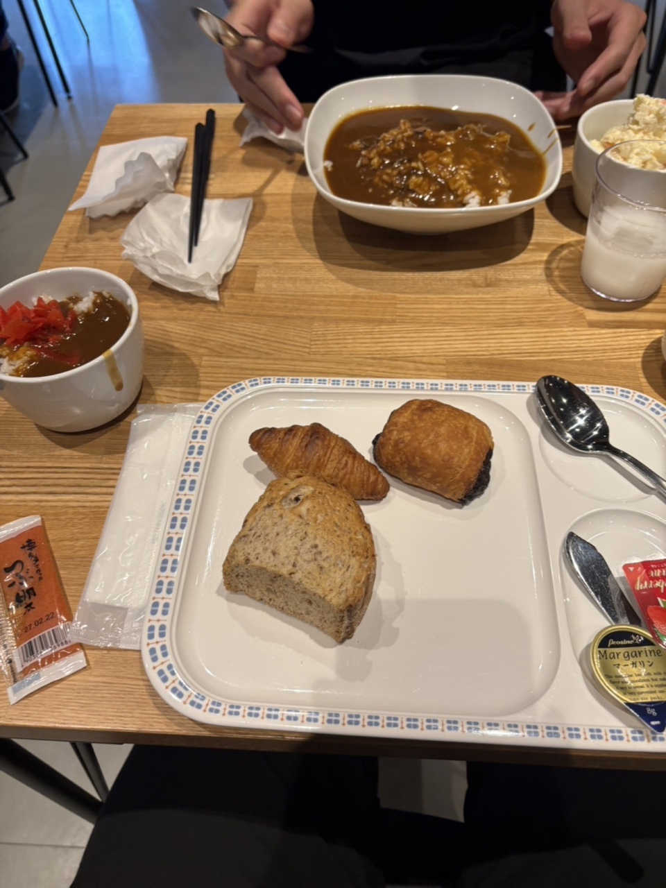 朝食は無料ですが、普通でしたが、焼きたてパンの良い香りと、カレーが意外と美味しかったです。