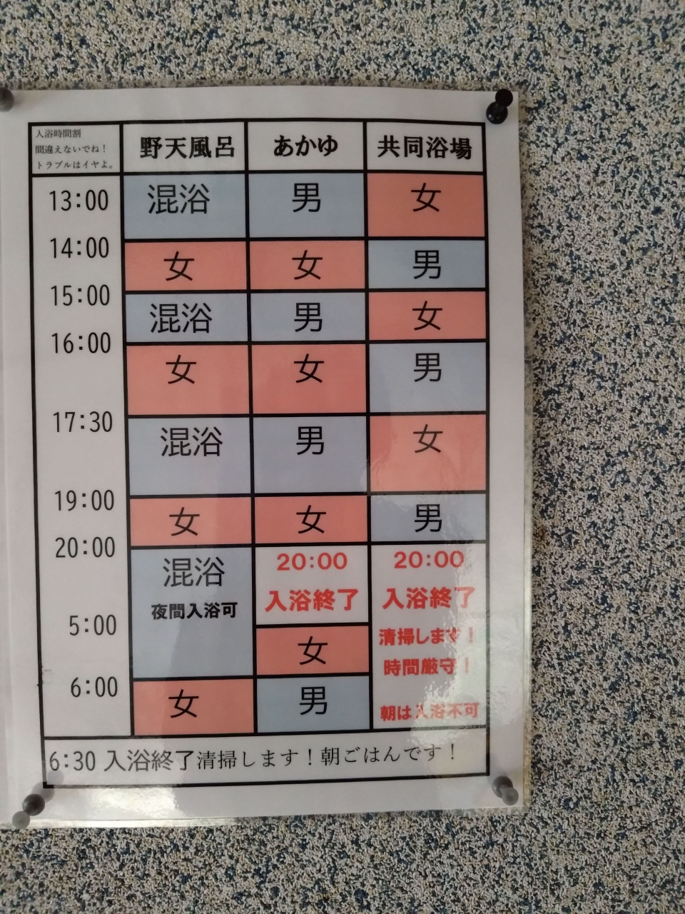 それでも温泉が素晴らしいので、絶対に訪れる価値があると思います。それぞれ源泉が違う3種類の温泉があります。なかでも大自然に囲まれた大きな野天風呂が有名です。私が訪れたときはあいにくのお天気でしたが、夕暮れや星空が美しいのだそうです。温泉は3つとも女性専用タイムが設定されているので、女性でも安心して入ることができます。ちなみに、つかるだけの温泉で、洗い場はないので、髪を洗うことはできませんのでご承知おきください。