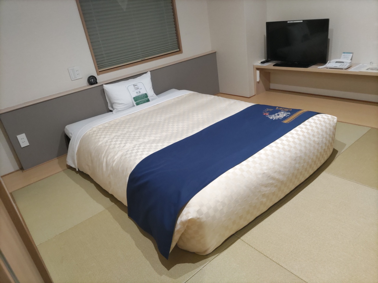 三島駅南口から徒歩5分程度にあるホテルです。新幹線の出口を間違えると遠回りになるので注意してください。今回は和モダンの部屋を予約しました。和室で少し固めの低いベッドがあり、とても落ち着く部屋でした。朝食はおんふらんすでいただきます。静岡おでんや