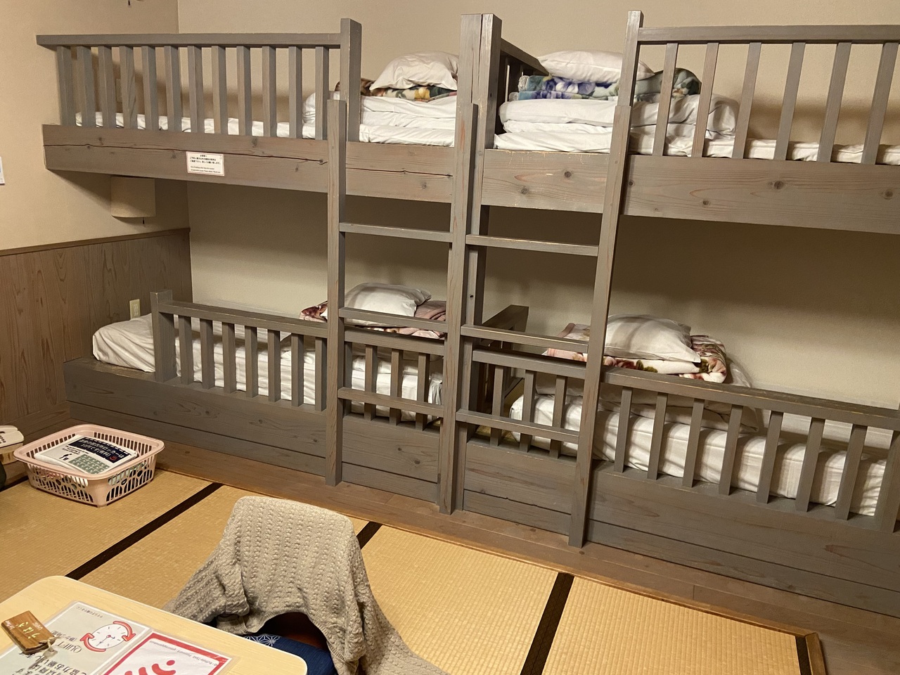 二段ベットかける2が設置された部屋に宿泊しました。二人でも二人分の費用のみで宿泊できるのでお得でした。