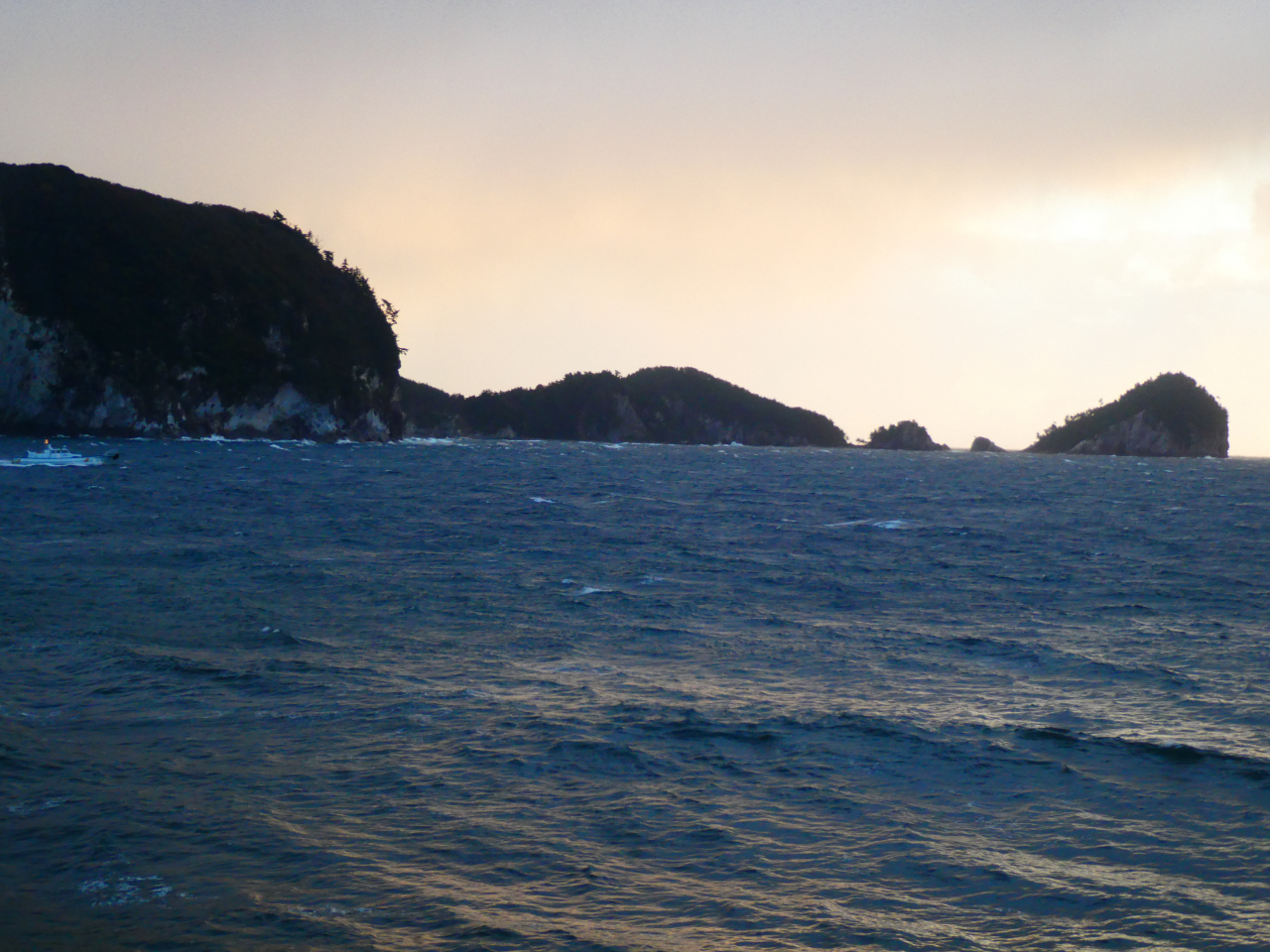 到着時、日本海は時化で波が荒れ、窓を叩く雨音がかなり大きかったです。かわって翌朝は凪の海が眼前に広がり、こうした海の風景を目の当たりにできるのもこの宿の醍醐味なのだろうと思いました。部屋は2階でしたが、エレベーターがなかったのがちょっと辛かったです。大浴場が2階なのは助かりました。温泉ではありませんが、ゆったり入れる広さです。夕食は前菜、刺身、台物、揚物など海の幸満載ですが、隠岐牛のローストもありました。朝食は和食で、スタンダードな内容。女性スタッフはよく気が付く方でした。