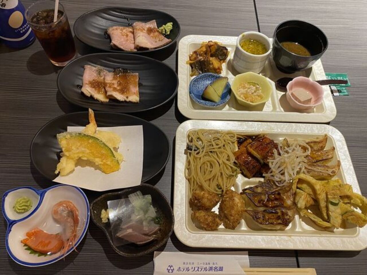 JR東海道線鷲津駅まで送迎あります。駅から約20分ほど、浜名湖の西側にある三ヶ日温泉の宿です。建物は大型フェリーのような作りで、一部団地のように廊下は外になります。部屋からは浜名湖のレイクビューの眺望です。食事は朝夕バイキングです。浜松ご当地鰻、餃子食べ放題!!ローストビーフも食べ放題。様々な具材で作るセルフ鍋と、食べきれないほどのメニューです。朝のバイキングもメニュー豊富です。温泉もレイクビューの内風呂と露天風呂もあります。