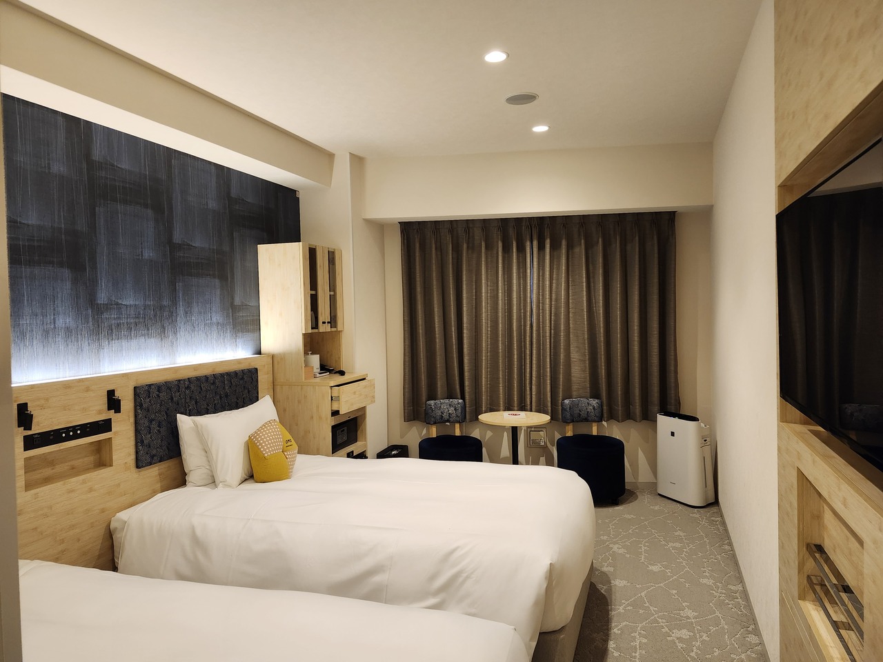 客室は新しくてきれい。極狭ではなくよくあるビジネスくらい。