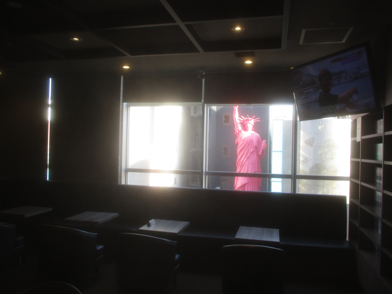 BIZCOURT CABINすすきの ルートインホテルズ4階にはラウンジエリアがあります。窓側の座席からはすすきのの街が見えました。車や人が通行しているのが見え、あらためて、にぎやかな街であることが分かりました。その街のど真ん中にあるカプセルホテルは便利に感じました。