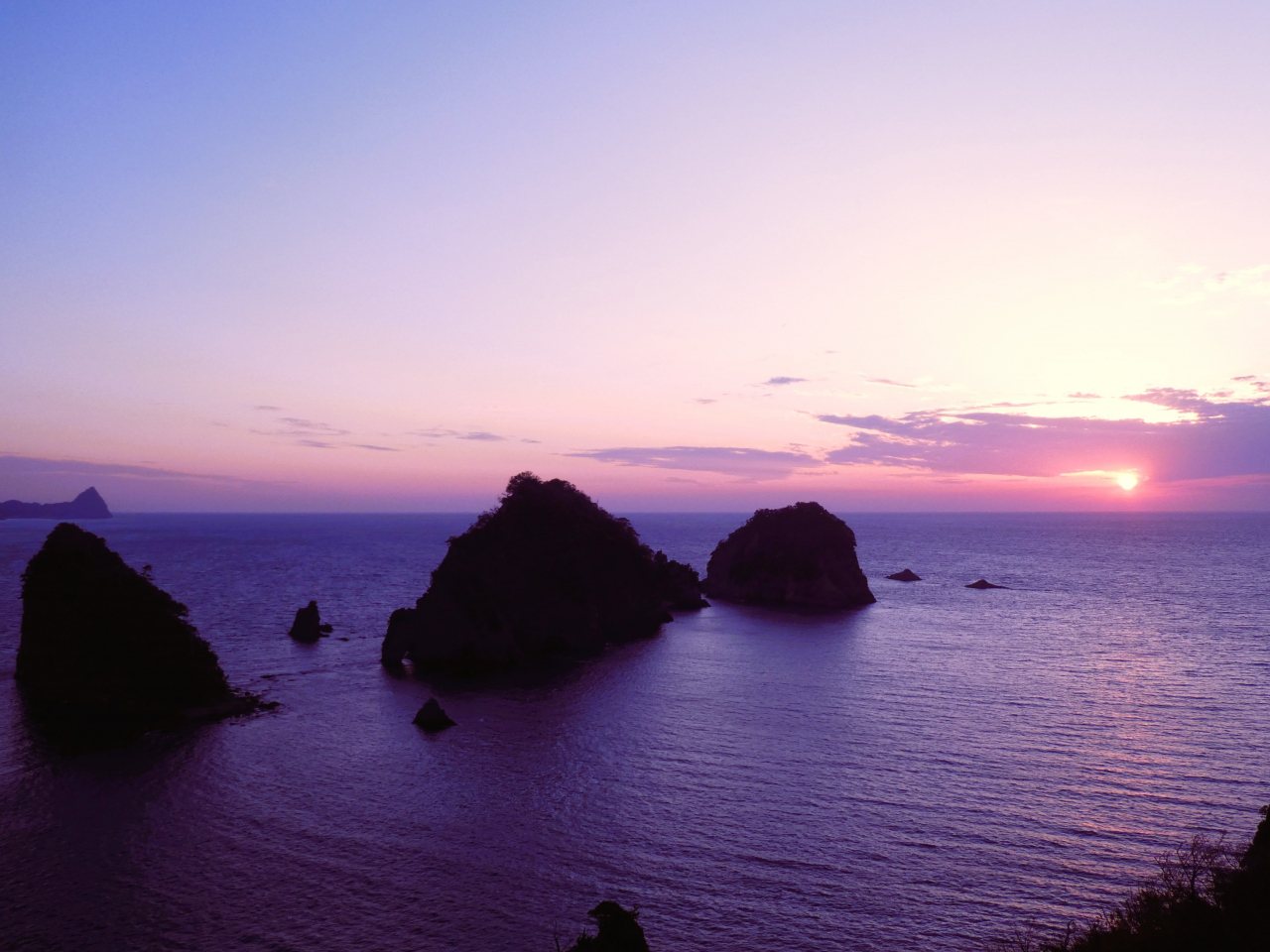 ホテルスタッフが自負するのも無理はなく、三四郎島と夕陽を一枚の写真におさめるなら、西伊豆で他のどのホテルよりこのホテルが一番眺めがいい、と断言できます。屋上(階段上る)からはその絶景が堪能できます。部屋は三四郎島側か銀水側のどちらかですが、どちらもオーシャンビューです。レストランも、温泉も一部貸切を除いて、海を眺められます。露天は階段を下りる必要がありますが、これも絶景風呂です。2階にラウンジがあり、コーヒー・お茶・ビールなどがあり、夕方は心太のサービスもありました。夕食はやはり金目と鮑がメイン。他にもう一品くらいあるとよかったですね。朝食は「THE日本の朝ご飯」で、ご飯のお供が多く、食後のデザート類もなく、それはちょっと残念でした。