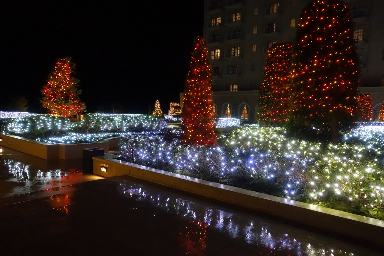 ロビーはクリスマスツリーで彩られ、カフェでは生演奏も行なわれていて