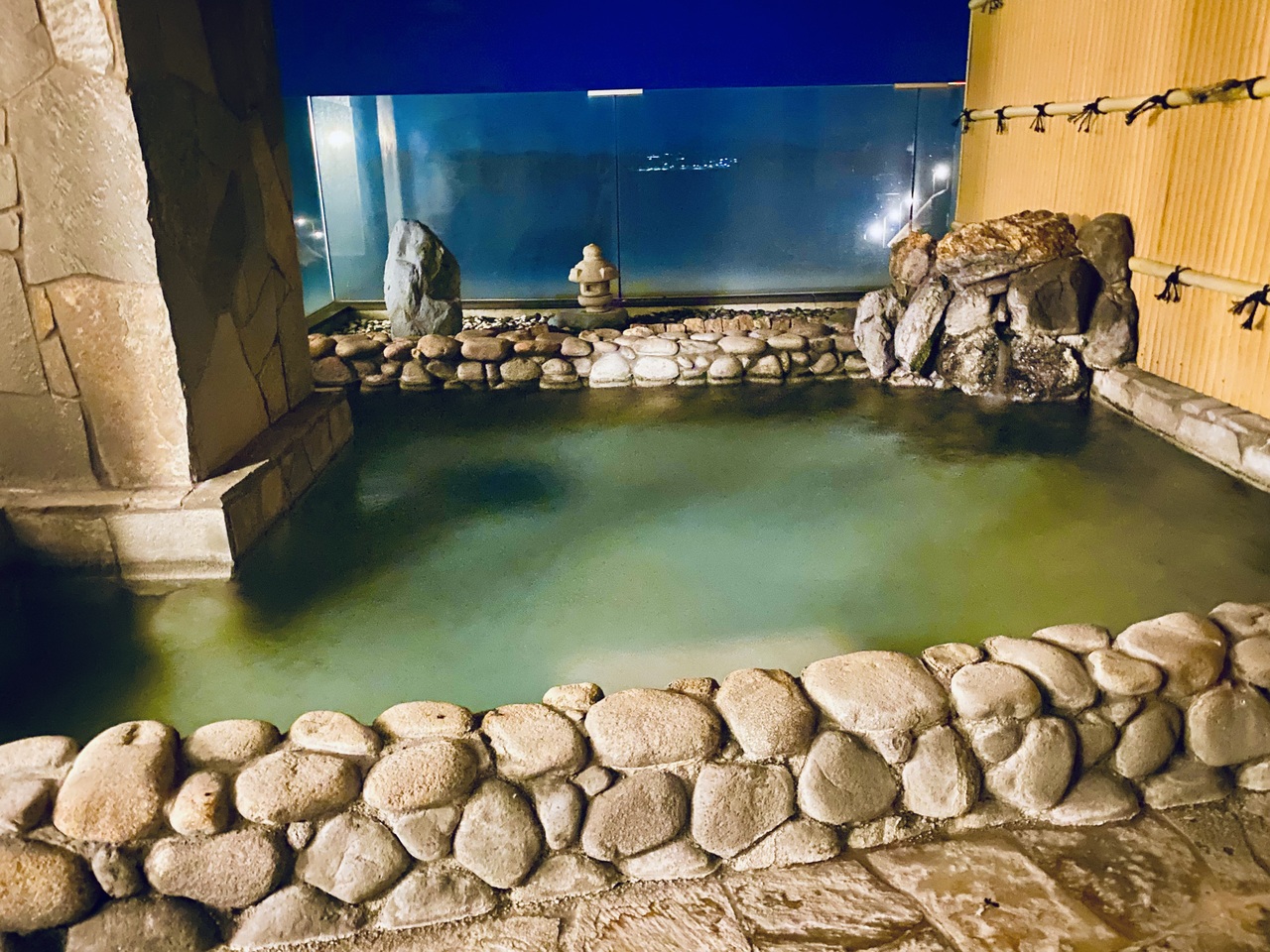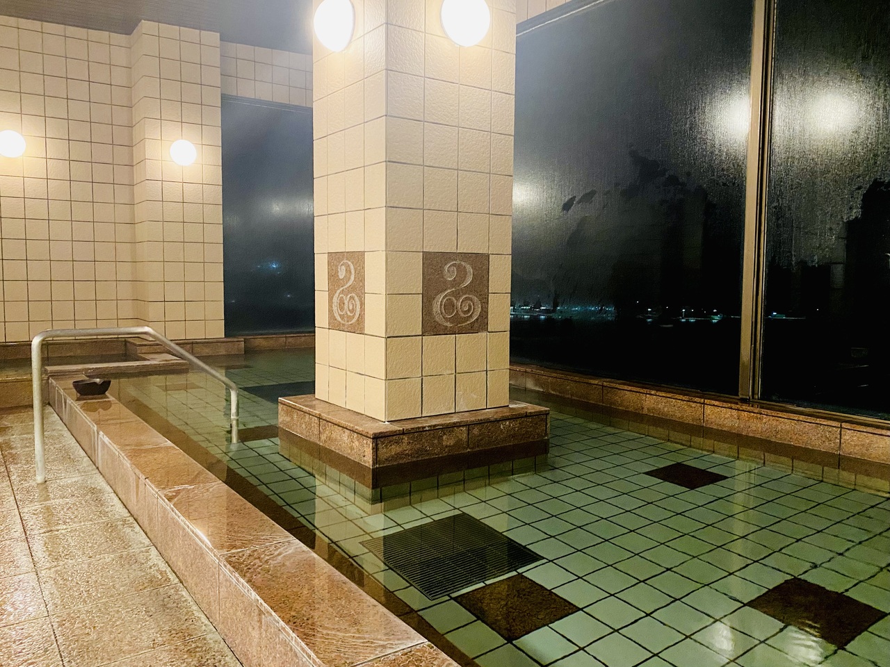 ホテルの5階にある大浴場「月と太陽」は温泉ではありませんが、海を見下ろせる展望浴場と展望露天風呂もあり、サウナも完備されていました♪