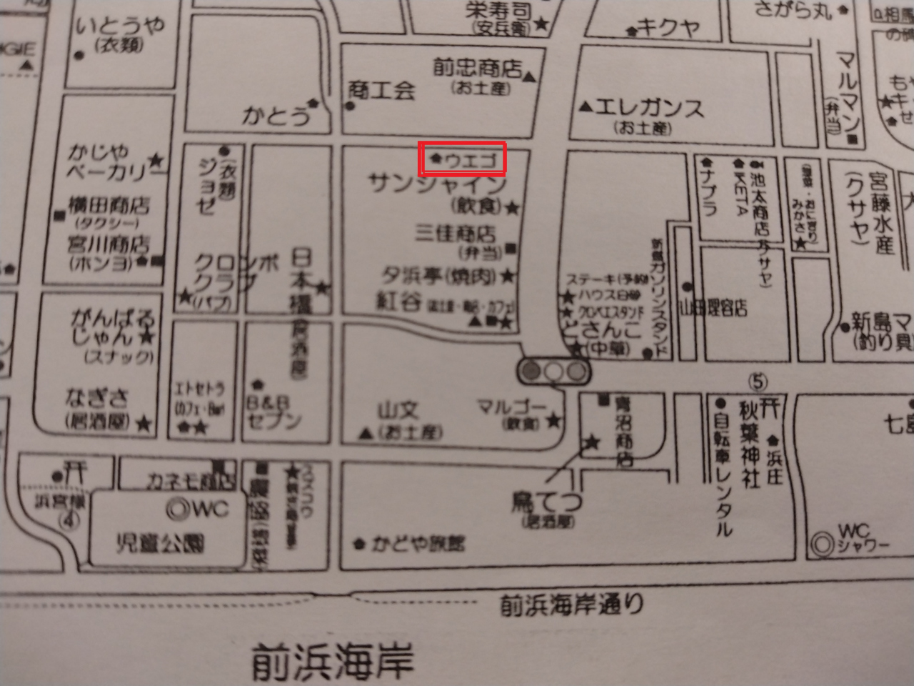 新島の民宿ウエゴは、新島の中心である本村中央通りに近い場所にあり、立地条件抜群の民宿です。お土産屋さんやレンタルショップ等が近くて、便利です。
