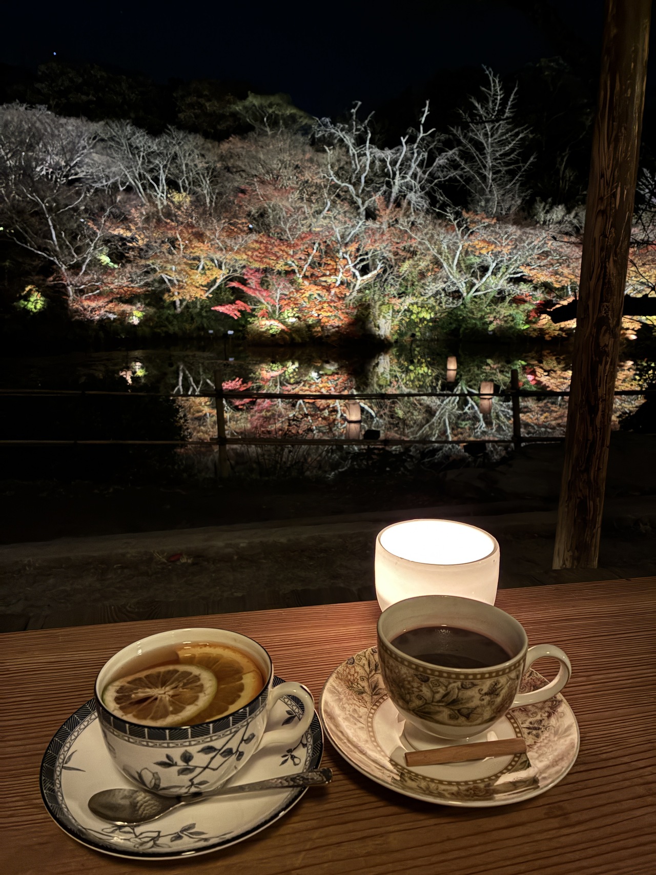 あと、御船山楽園で紅葉祭りの季節は夜のライトアップと一緒に21時からお茶屋さんが宿泊者限定のバーになってそこでゆっくりと紅葉を眺められるのも最高でした