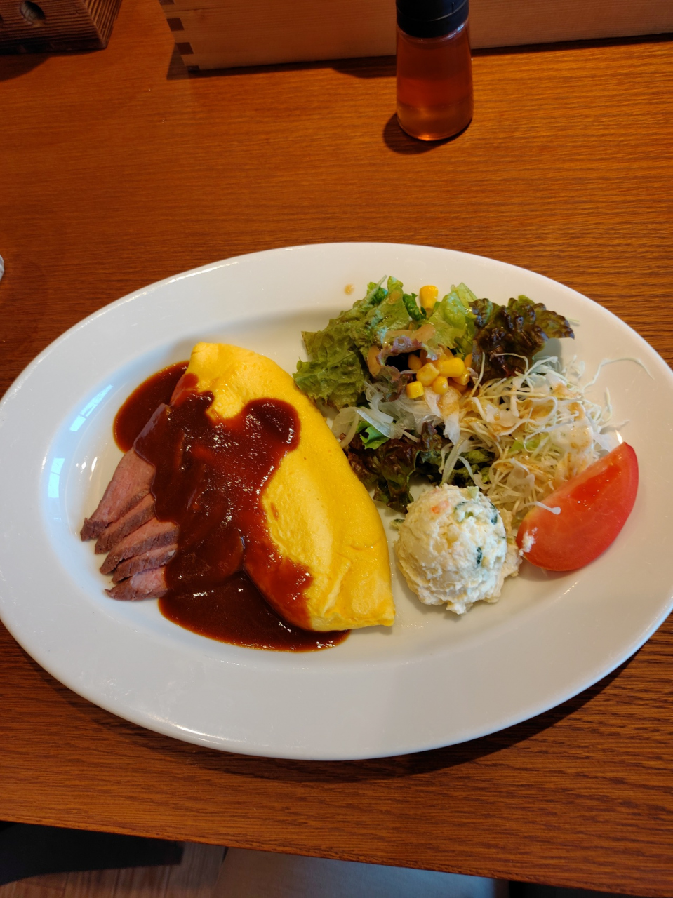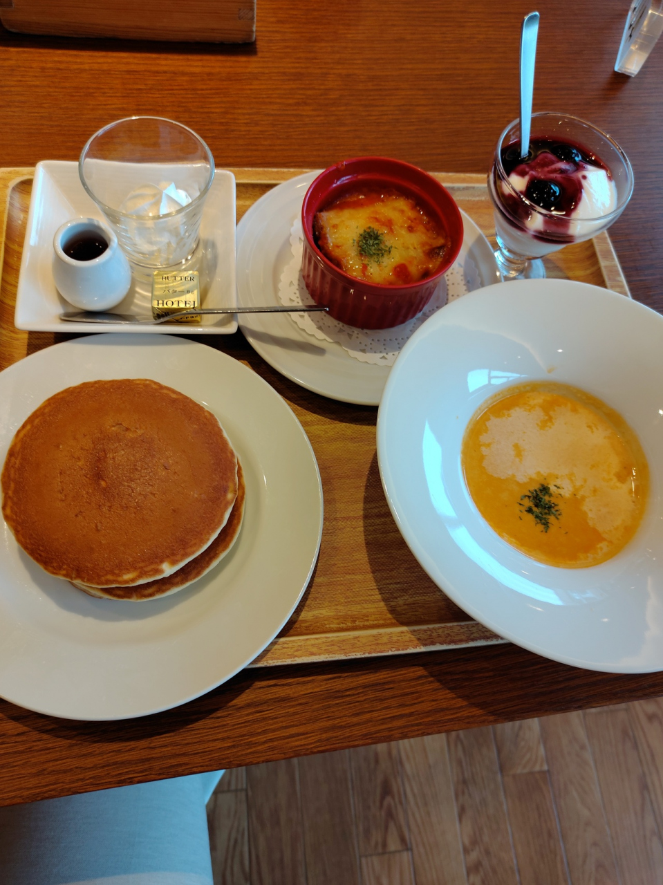 ローストビーフ、オムレツ、ラザニア、オマール海老のスープ、パンケーキとかなり豪華です。主人は和食にしましたが、鯛シャブなどあり和食もどれも豪華で、どれにするのか悩んでました。