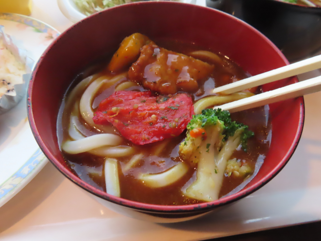 夕食・朝食でちょっと変わり種の讃岐うどんが食べられ、トマト味のうどんにやみつきになりました。
