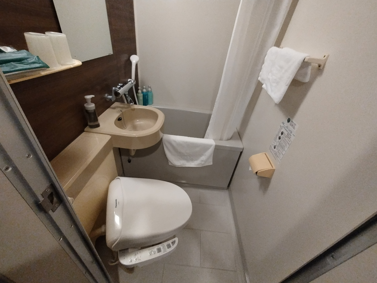 1、トイレの便座が小さくしかも便器に対して前にオフセットしているので、男性のモノが便器や便座の内縁に当たってしまうので不衛生で使用できなかった。1Fの共用トイレを使用しました。まぁコンフォートルームにしておけばこの問題は回避できたので、今回はこちらの落ち度