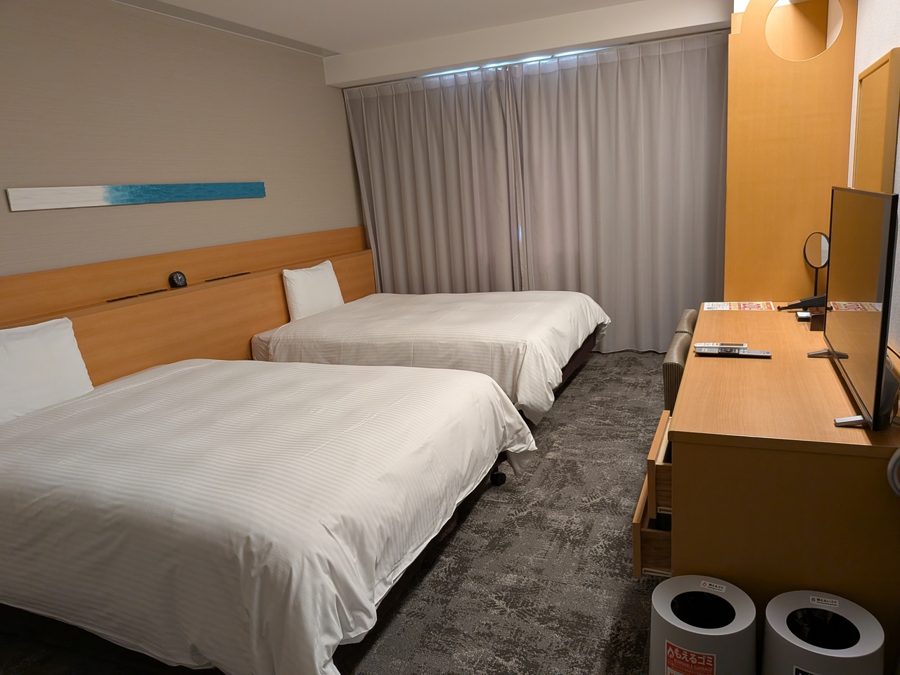 ツインの場合、ダブルサイズのベッド2台と独立した広い洗面台があり、部屋も広くて使いやすいです。バスタブが普通のビジネスホテルより長いのが売りのようですがただ幅が少し狭いと感じました。