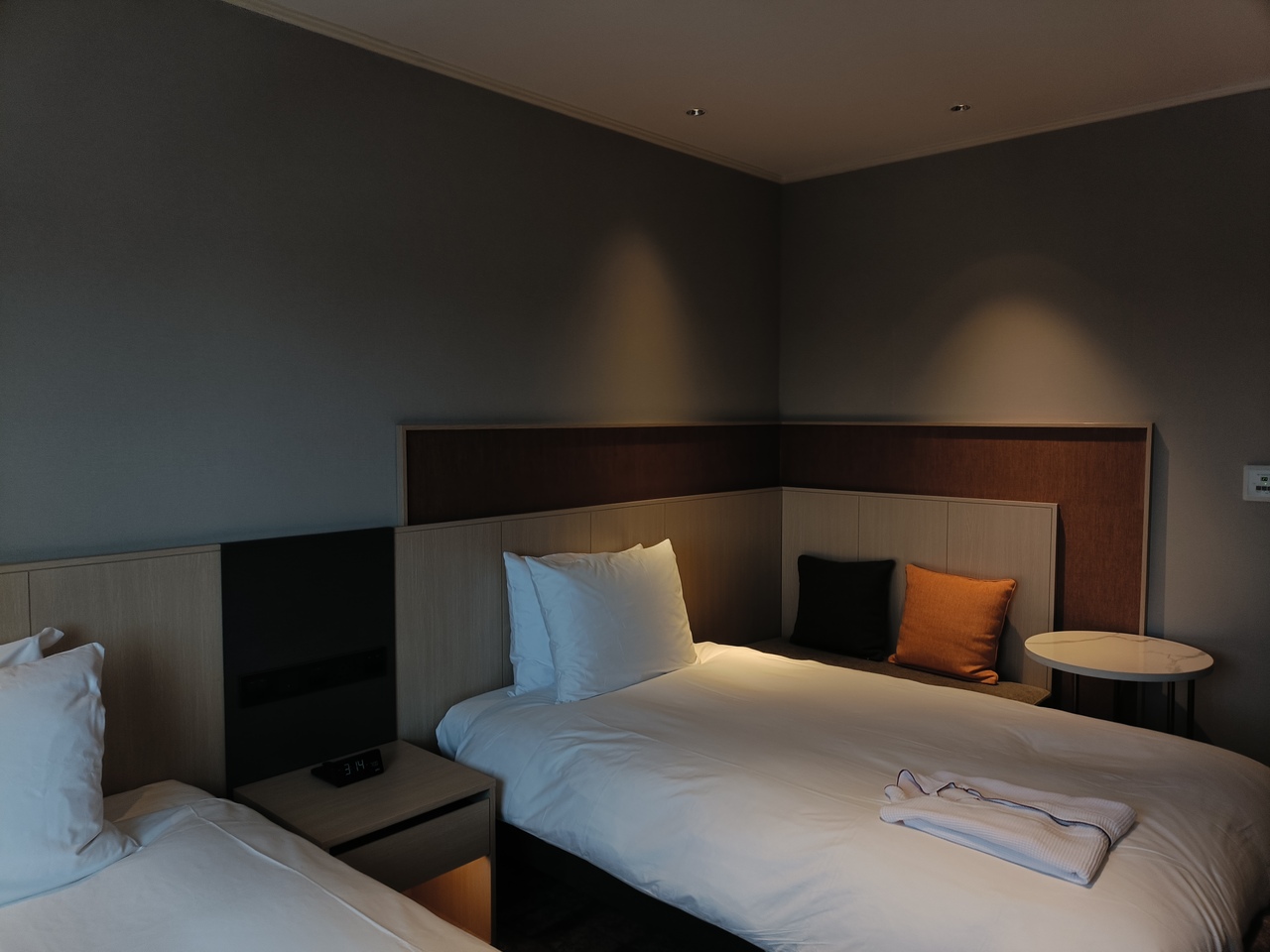 残念だったのが枕カバーやシーツは交換されていたものの前泊者のコロンか整髪料の匂いがきつく残っていたこと、チェックイン時にトイレのボールタップが外れていて水が流れなかったこと、そしてせっかくコーヒーマシーンが付いていたのに水が下から流れ出して使えなかったこと。