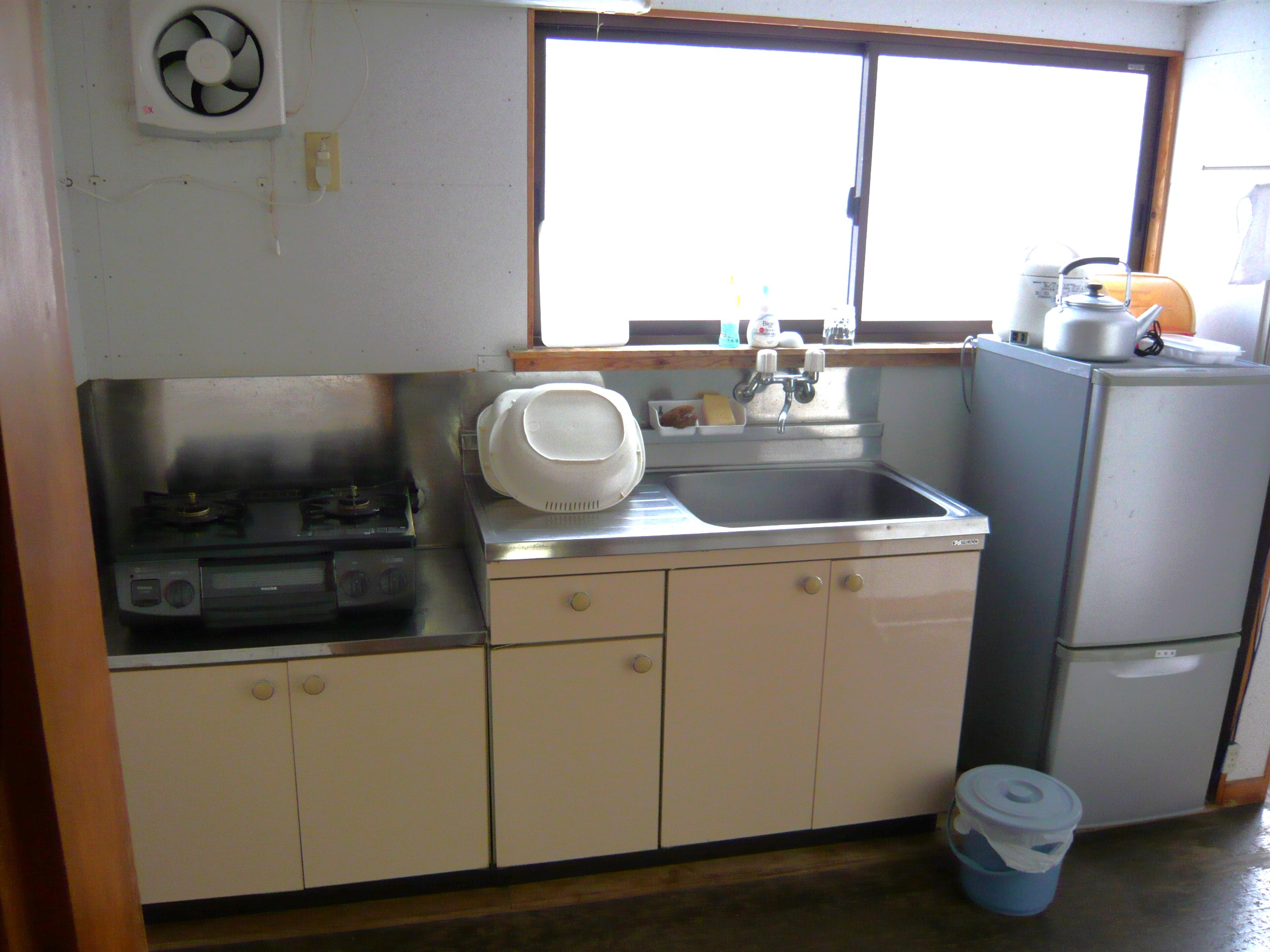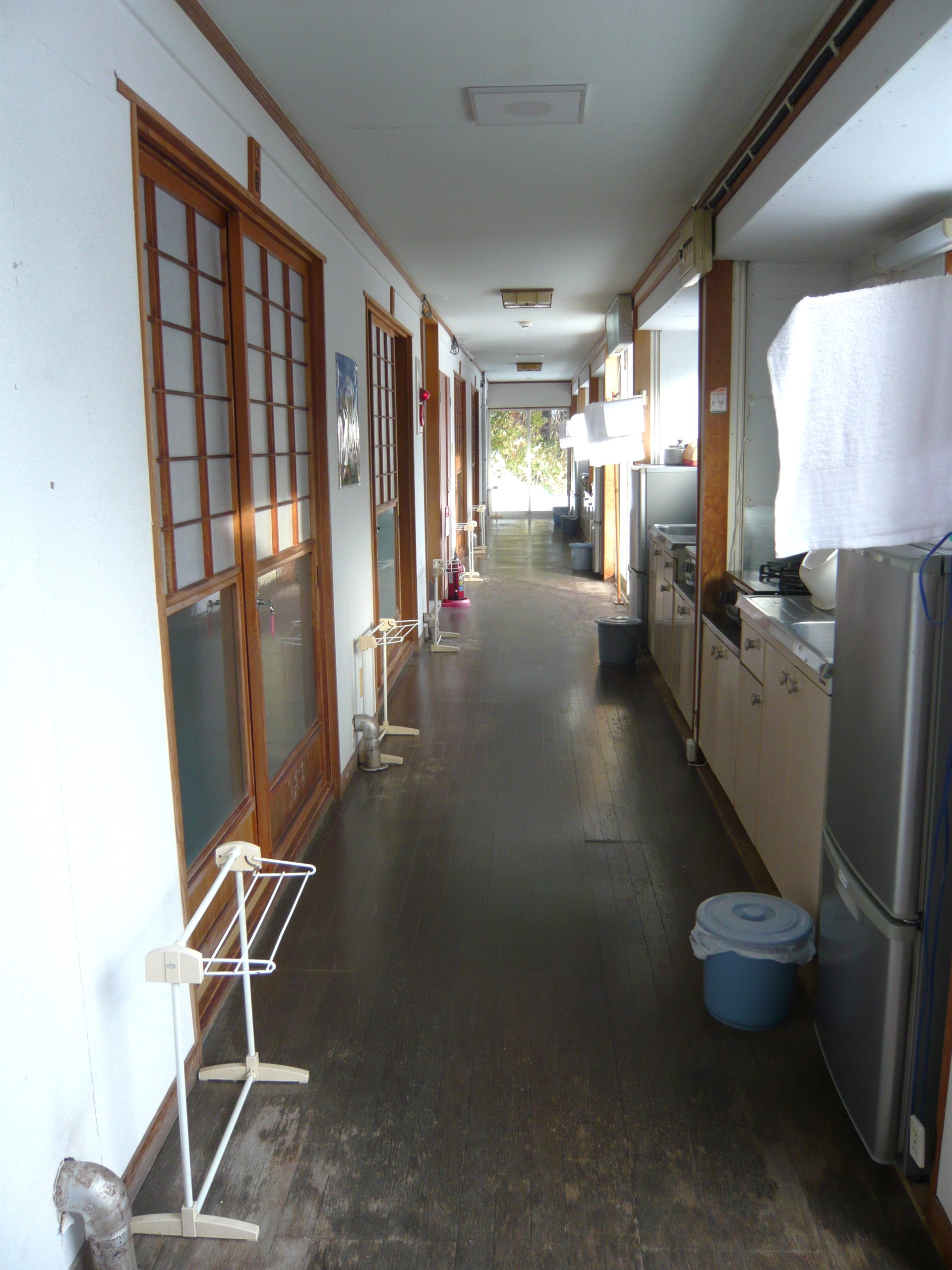 今回は湯治棟の部屋を予約しましたが実に機能的で、廊下に各部屋が並びその前に炊事場が備えられてる使い勝手が好いです(食材・調味料以外は全て揃っているので有難い)。