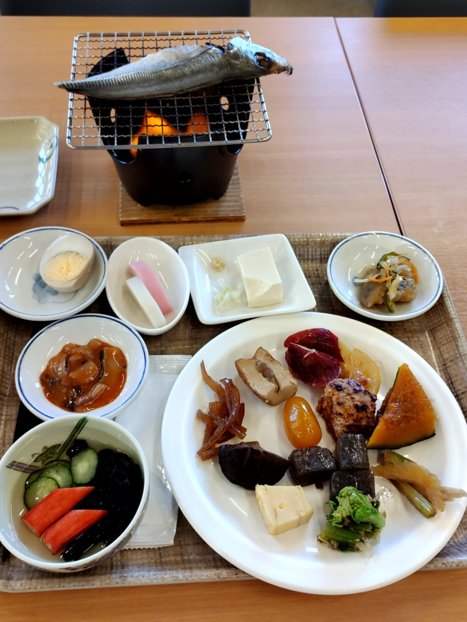 JR岩井駅からは少し歩きます.このホテルはコンドミニアムタイプで,外観も室内もほぼワンルームマンションでした.大浴場も付いていますが,一端部屋の外に出なければいけないので,冬は少し寒かったです.室内はとても広く,大型の冷蔵庫や電子レンジ,キッチンも付いているので,食材を購入して自分たちで調理するにはとても良い場所だと思います.食器類も付いていました.このホテルのウリの一つは朝食で,和食中心のバイキングですが,品数も多く,とても良かったです.