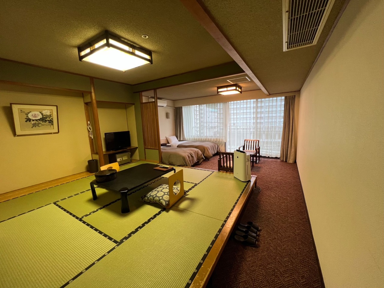 お部屋は、めちゃ広くて2人で過ごすにはもったいないくらい!古さは否めないけども、たたみはリフォームされていて綺麗だったから、ゴロゴロしてました(⸝⸝⸝⁼̴́◡⁼̴̀⸝⸝⸝)