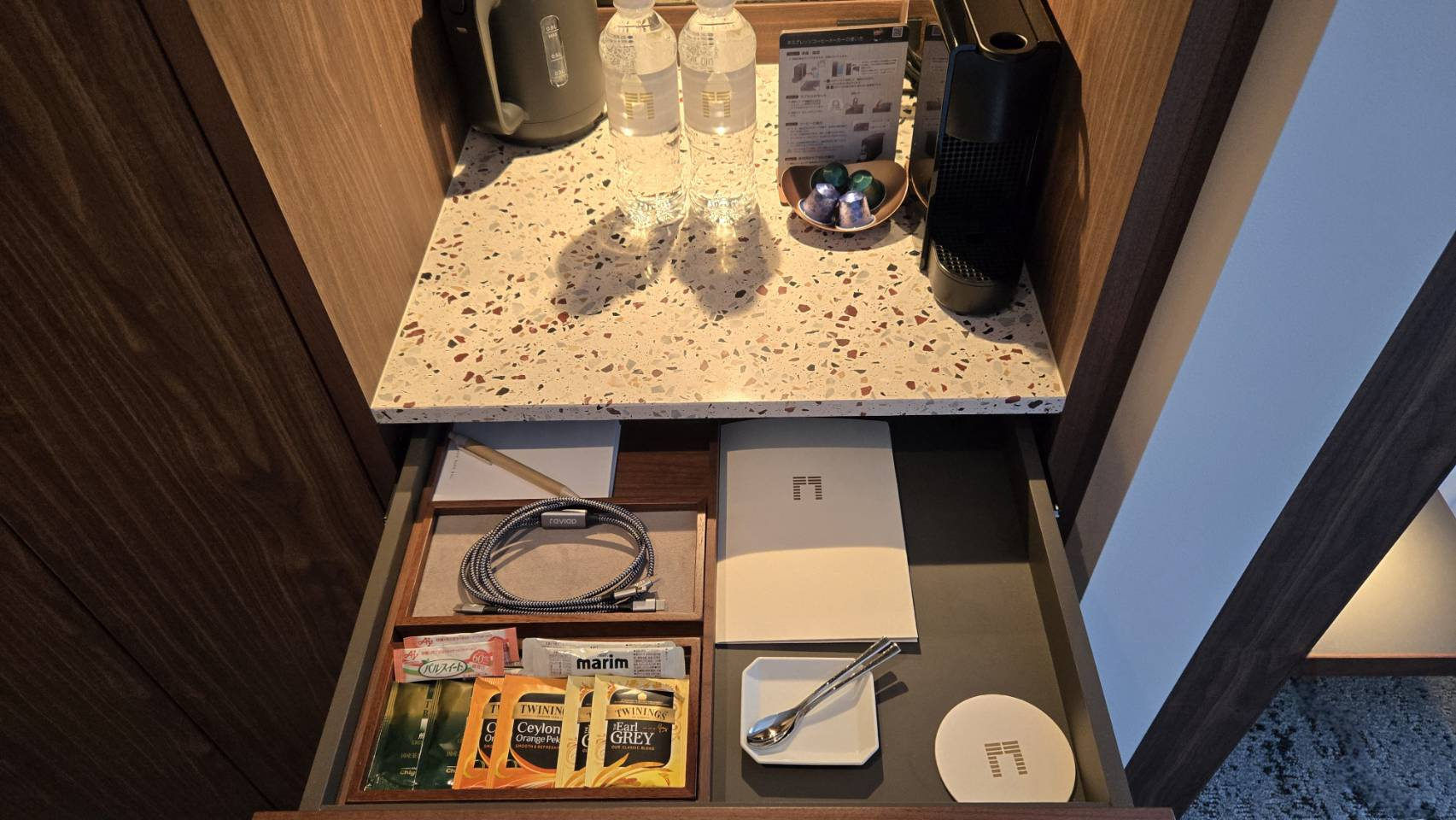 部屋は客室最上階の11階にアサインされエッセンシャルダブルの部屋は山下公園側では無いですが、みなとみらいの夜景にヨルノヨのイルミネーションも綺麗でした、部屋は180cm幅のデュベスタイルのベッドメイキングのベッドに加湿空気清浄機、スマートテレビ、お風呂、洗面、トイレ独立と快適に過ごせます、アメニティは部屋に用意されていて通常の物の他に、バスソルト、ネスプレッソのコーヒー2種類、紅茶2種類、ミネラルウォーターがあり、アイスペールも部屋にあり各階に製氷機があり便利です