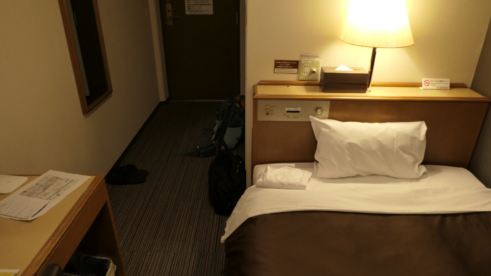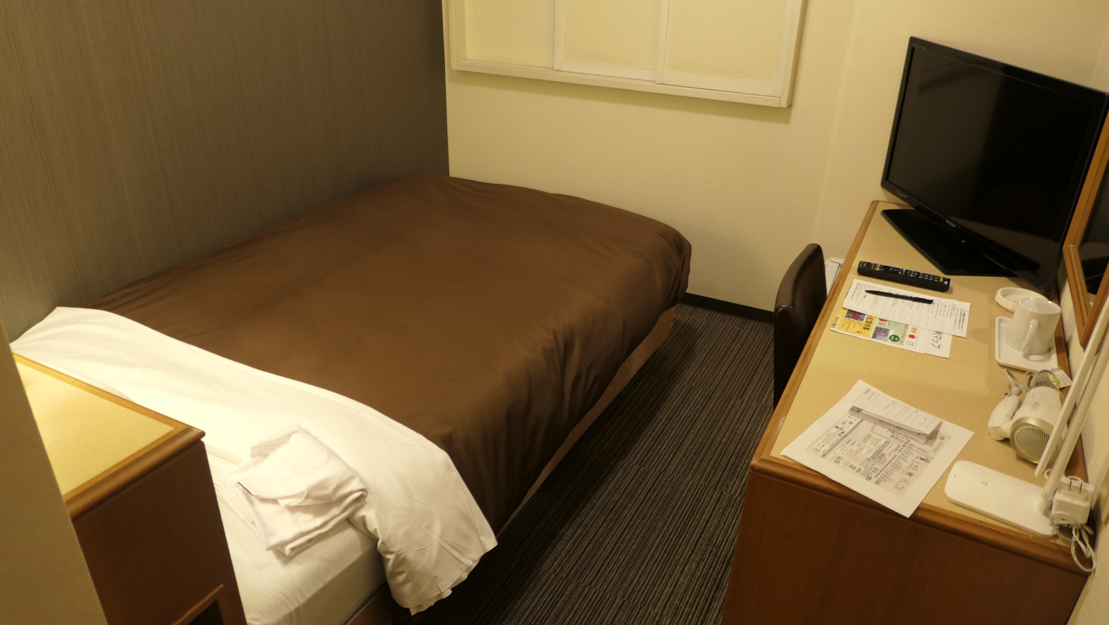 客室の設備は標準的ビジネスホテル、コンセントやwifiも必要充分、なかなかコスパの良いホテルでした。