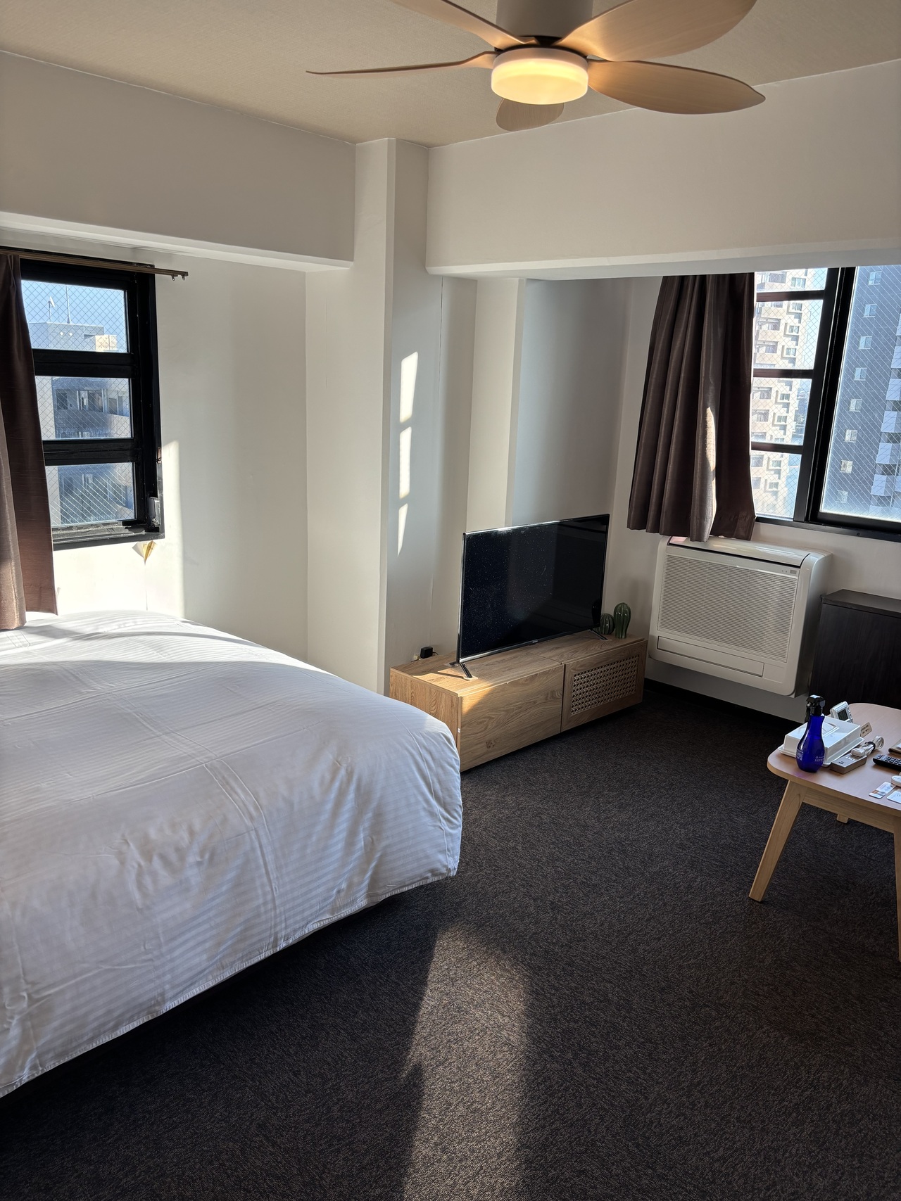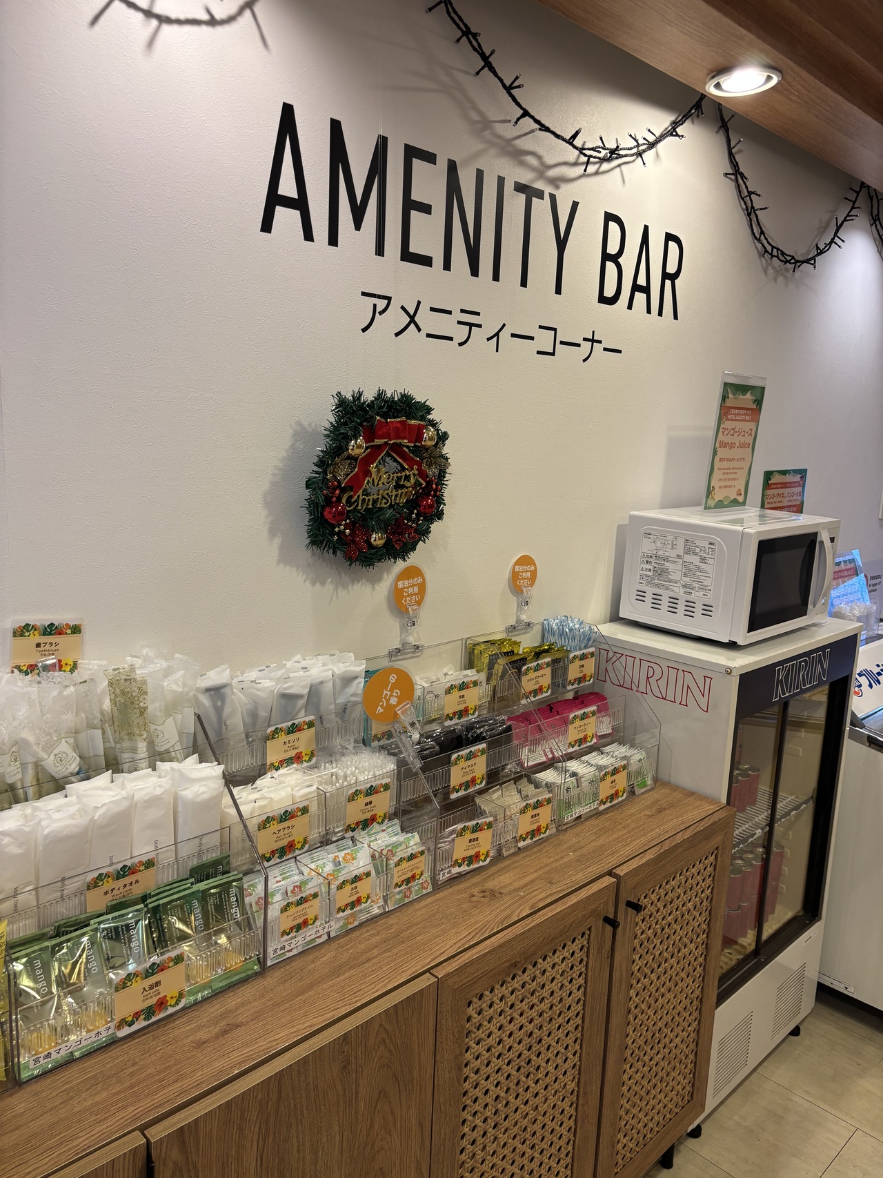部屋はかなり広く、ソファもあって良かったです。建物1階にはアメニティ(入浴剤や洗剤、化粧水など)コーナー、マンガコーナー、宿泊者がいただきるマンゴードリンクやアイスのコーナーがありました。