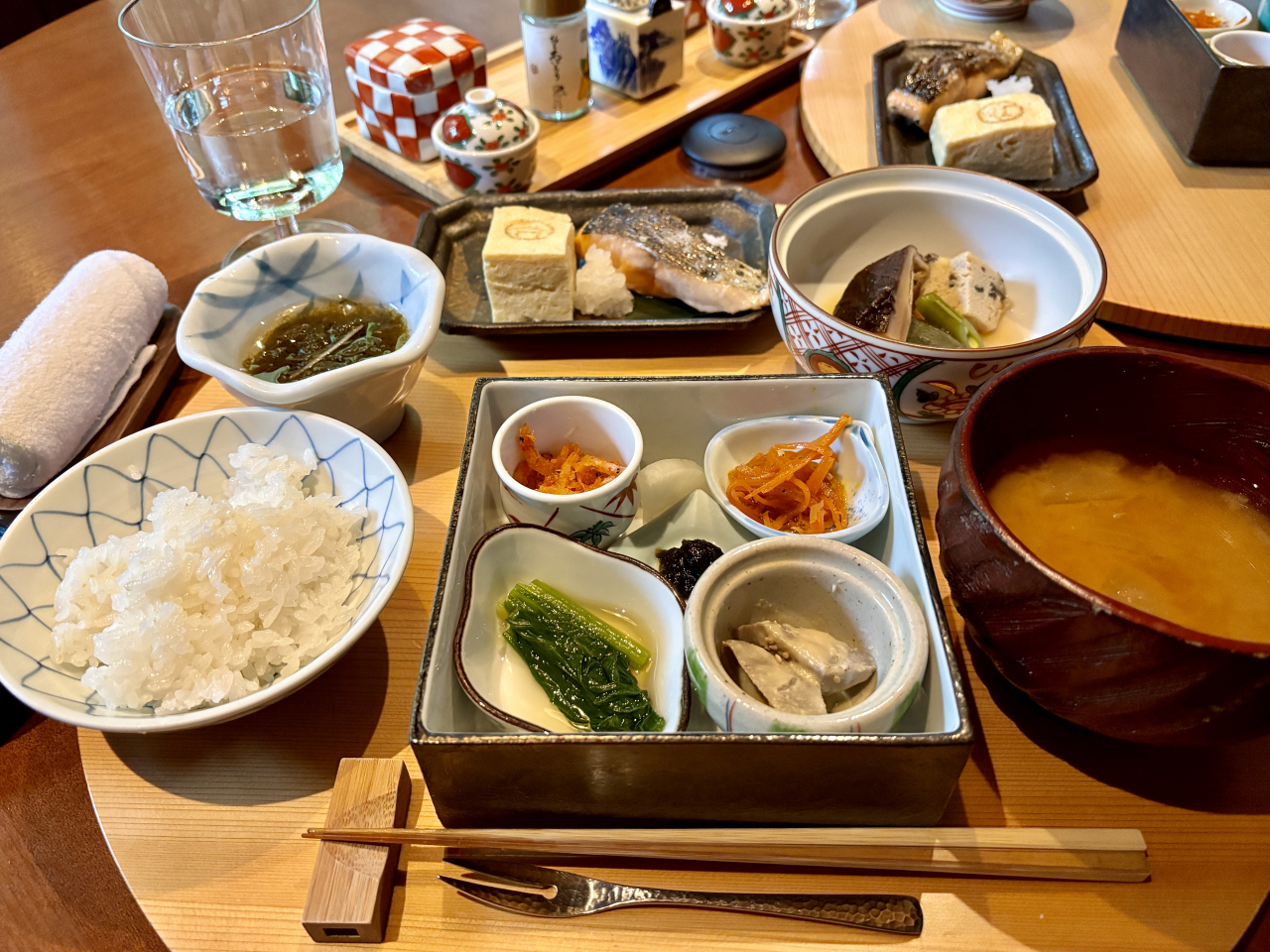 宿泊料金に修善寺駅からの往復送迎代,夕食時の飲み物代,ラウンジでの飲食代,客室内ミニバーの料金等が含まれています。半個室の食事処でいただく料理も地元の素材が生かされ,シンプルかつ滋味豊か。京風懐石料理というわけではないけれど,料理旅館としても一流の域。