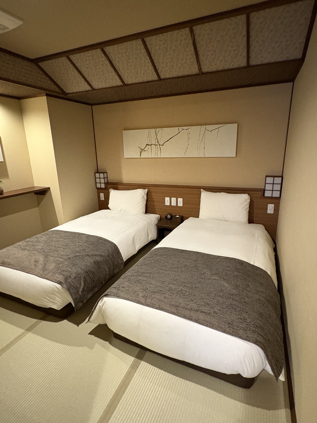 3泊しました。1泊目は多分日本人私達だけと思います。それくらい外国人率95パーセントくらいです。でもお部屋に温泉あるしお食事も時間予約制なので全然だいじょうぶでした。大浴場も畳敷で情緒あります。お部屋の温泉も熱いお湯が出て調節もできます。お食事も3泊とも内容が違い満足でした。