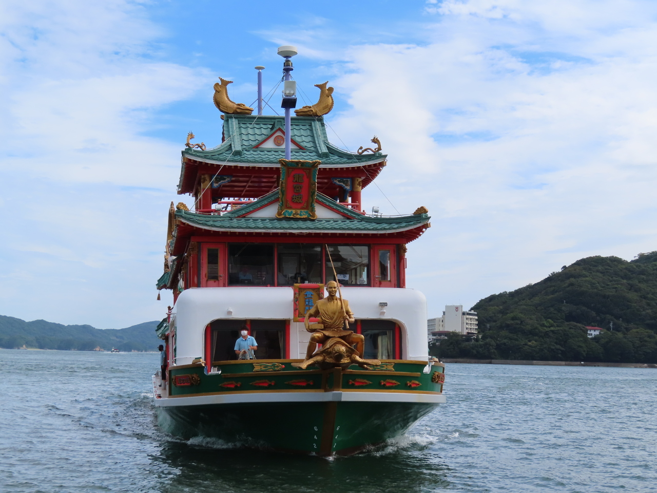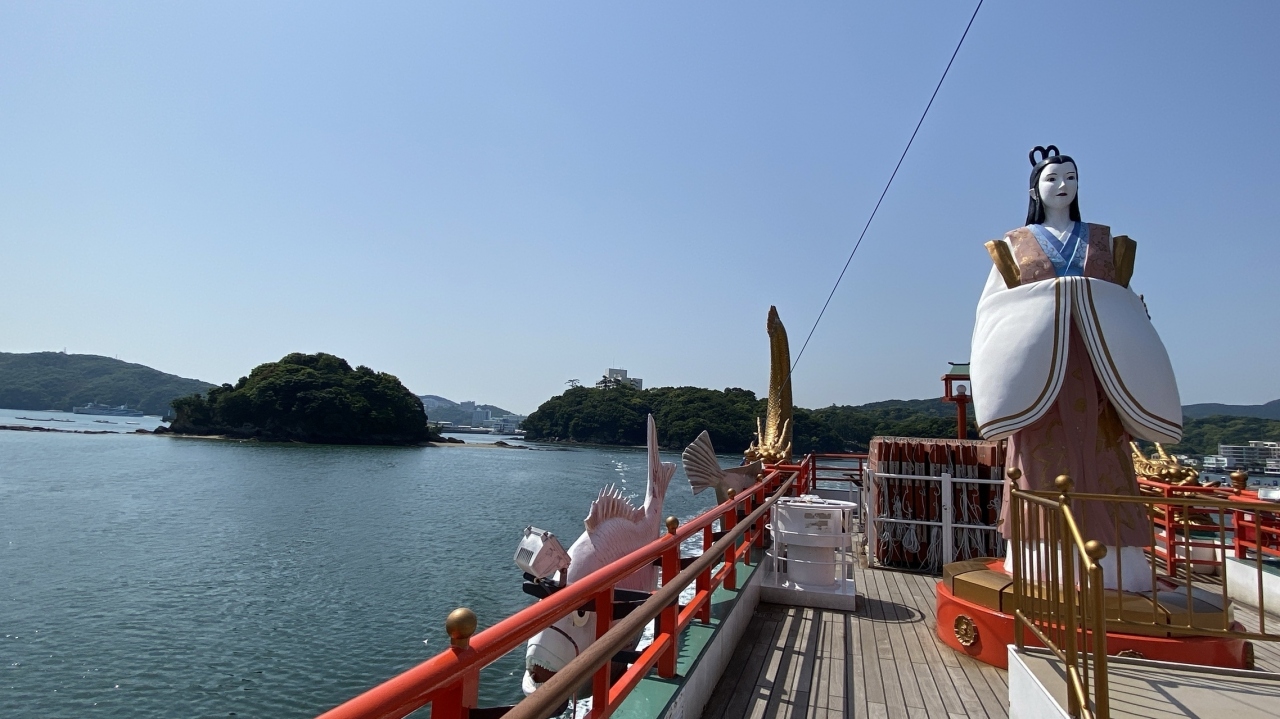 金ぴかの浦島太郎の乗った龍宮城で志摩湾めぐりとイルカ島でイルカのショーを!