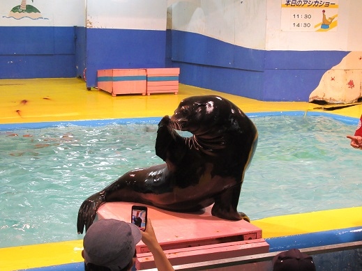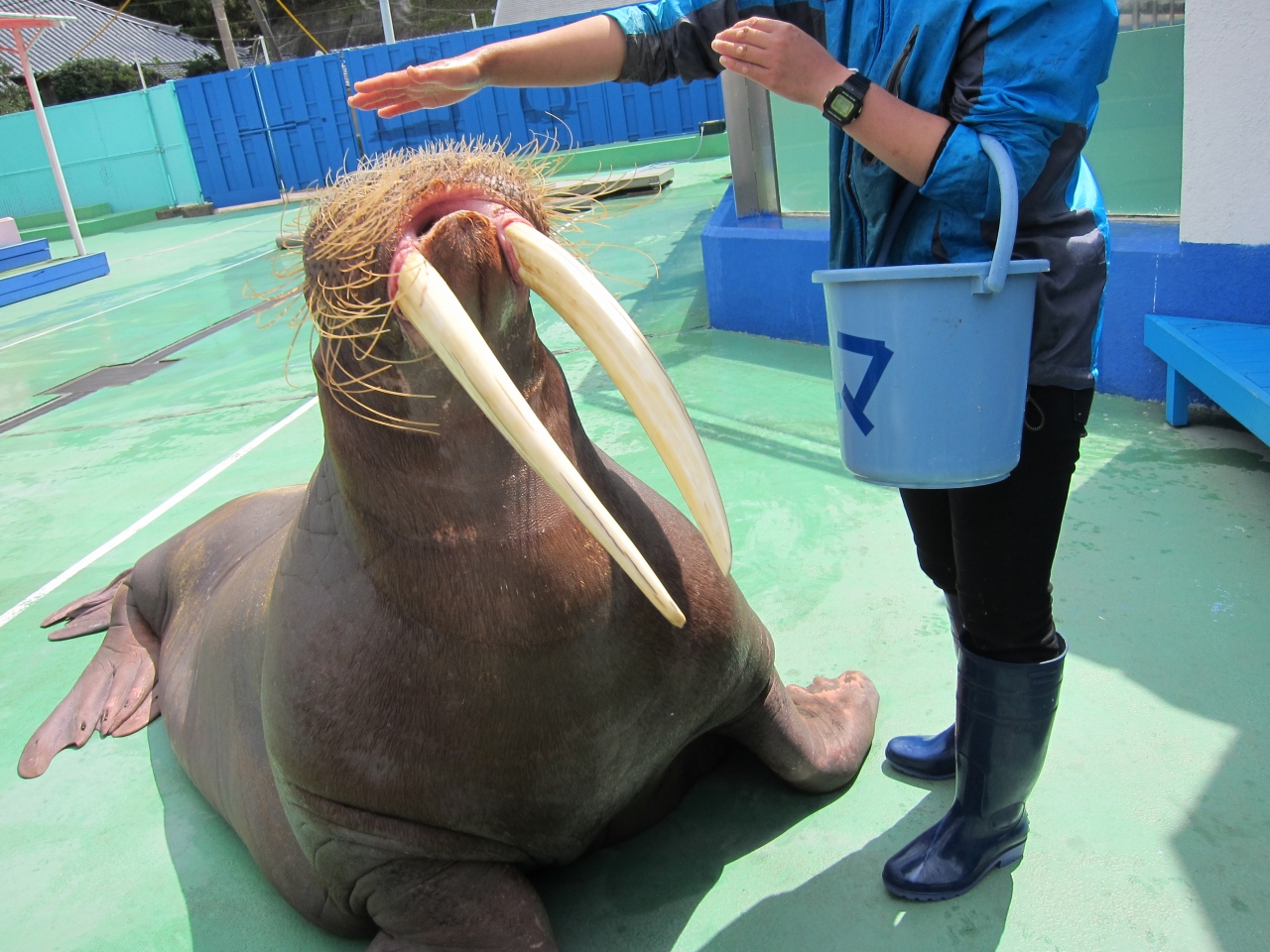 お客さんの1人が闘魂注入されたり、一緒に写真撮ったりさわったりできてセイウチとの距離はゼロです。