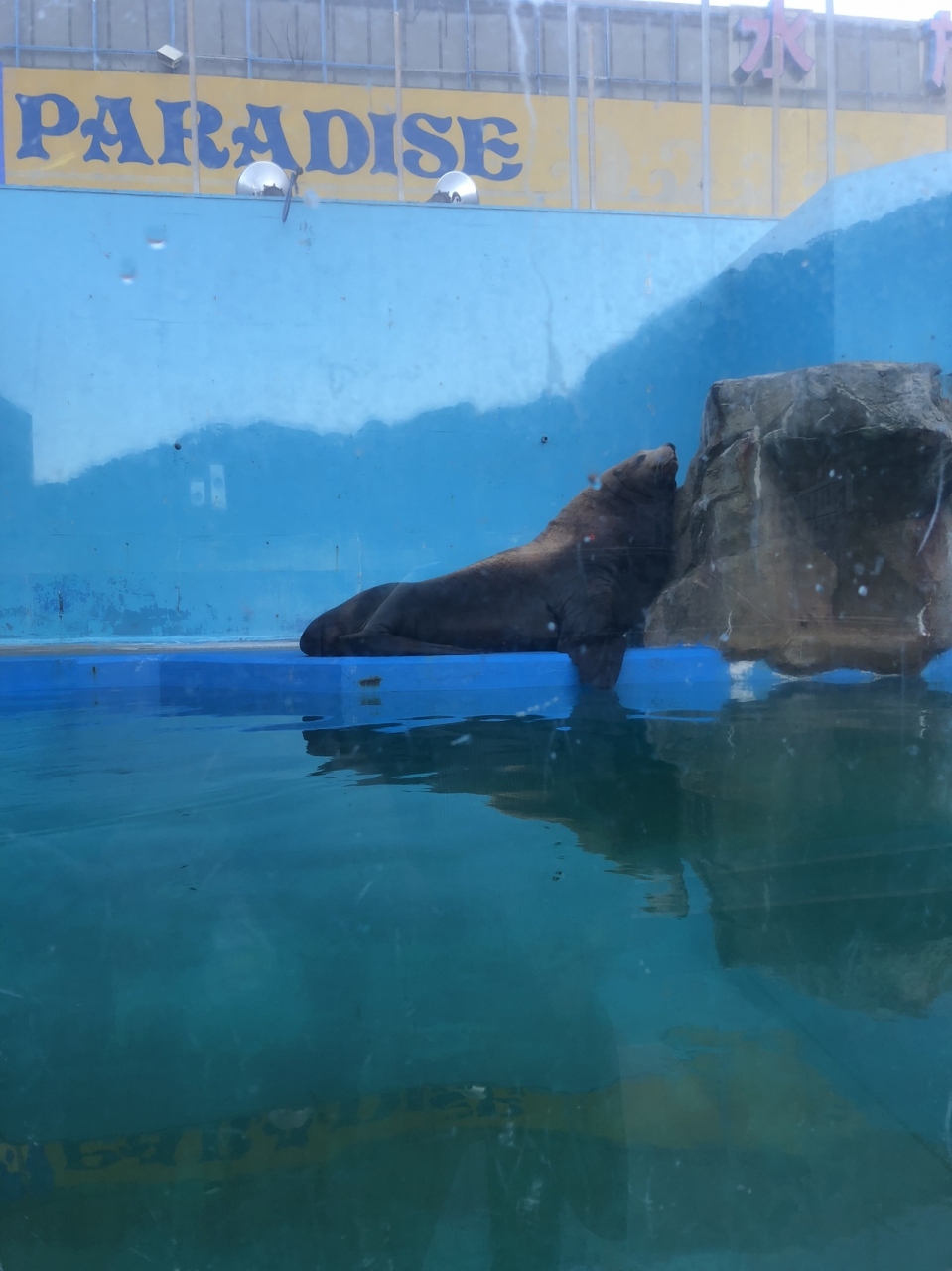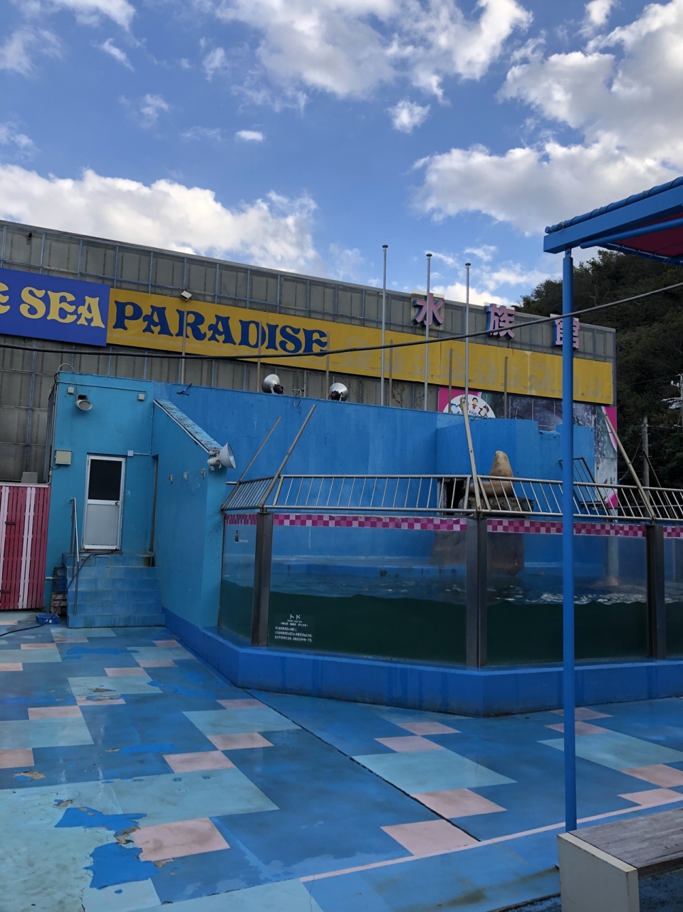 電車だとかなり行きづらい場所にありますが、一応駅から歩けない距離ではない。夫婦岩から行くと、まずは飲食店などがならぶ施設を... 続きを読む通り、その奥に入り口があります。水族館としてはこじんまりしてますが、そのぶん生き物たちとの距離が近いです。数時間の間に、いろいろな生き物と触れ合うことができました。セイウチの迫力はなかなかだし、アザラシもカワウソもきゃわゆ~い。大きい水槽の前でゆっくり座ったりねそべったりして鑑賞できるスペースがあるのですが、薄暗い中でいちゃいちゃしてるカップルがいたり、荷物広げて寝てる家族連れがいたり、少々治安が悪い部分もありました。 閉じる