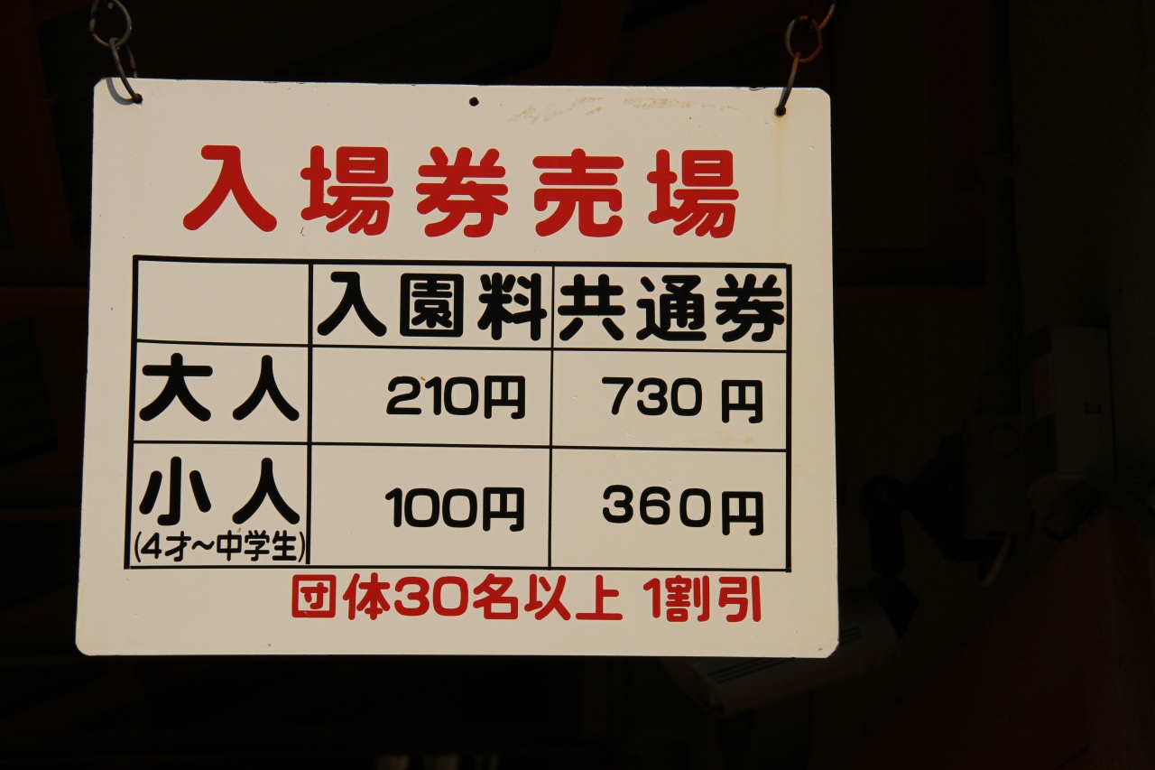 小規模なので、入園料も驚くほど安く、大人210、子供(4歳~中学生)が100円でした。