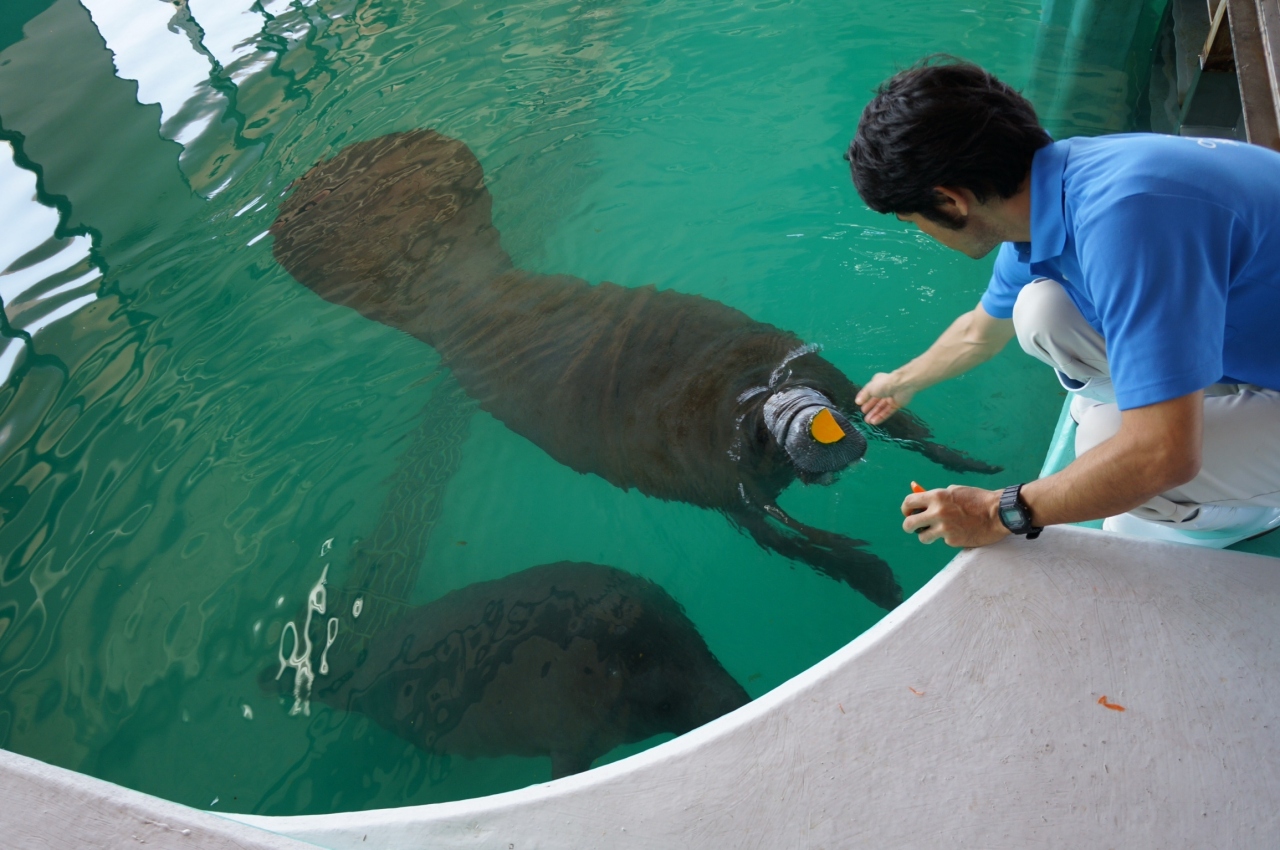 マナティーに会えるところって少ないんですよね。ここと、静岡(熱川バナナワニ園)と三重(鳥羽水族館)と香川(屋島水族館)みたいです。ここの水槽は綺麗だったので、マナティーが見やすかったです。