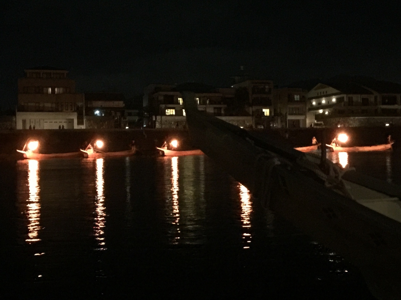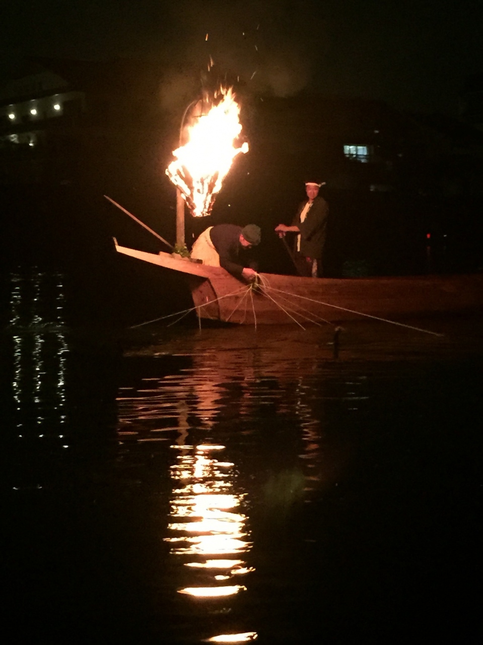 真っ暗になりいよいよ鵜飼いが始まりました。