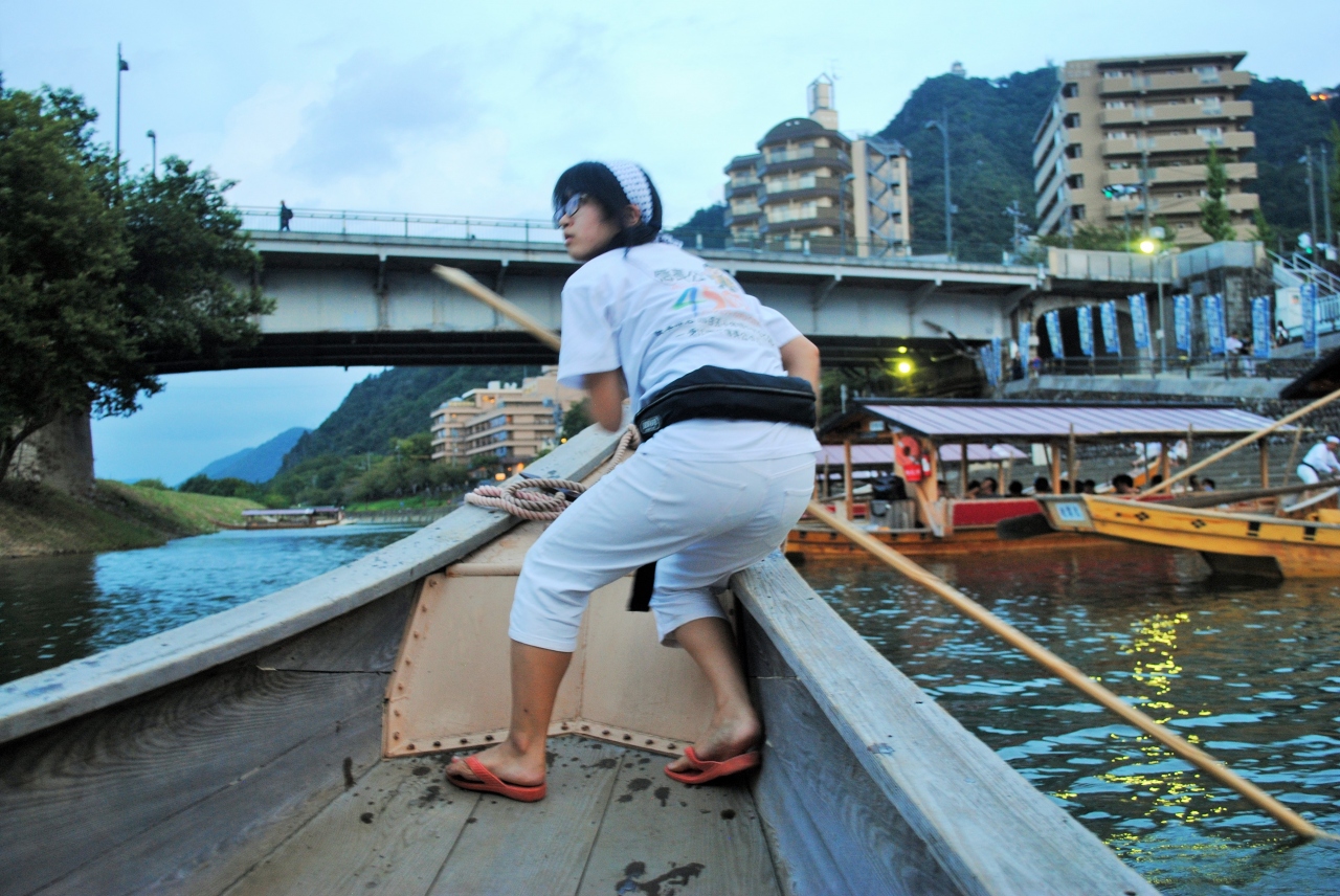 鵜飼の細かいところを解説しながら鵜飼観光船を操ります。
