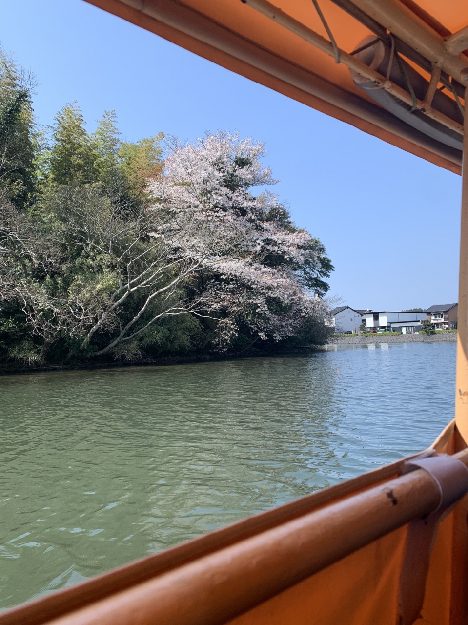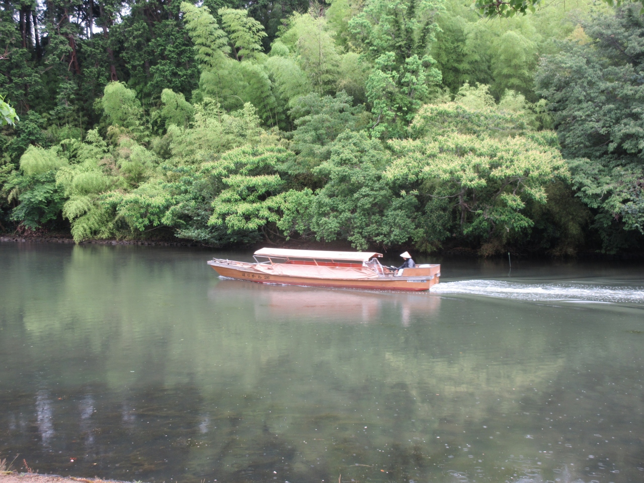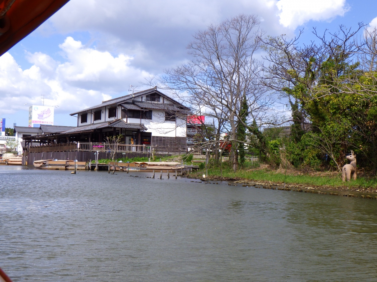 船頭さんによって船も多少違うようですし、説明の仕方やノリも違います。最初は、ふれあい広場乗船場までで下船しましたが、とてもユーモアのある船頭さんでした。塩見縄手で小泉八雲記念館、小泉八雲旧居、武家屋敷を見て周り、昼食を八雲庵でとってから、ふれあい広場乗船場から再度乗船しました。こちらの船頭さんの口調はイマイチでしたが、歌を歌ってくれました。