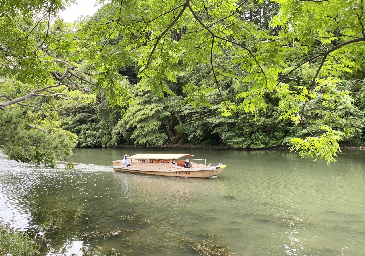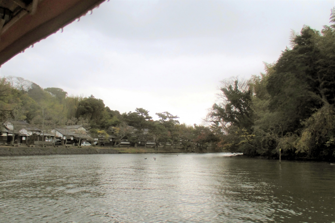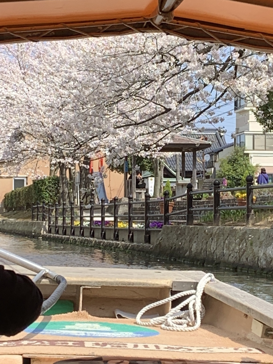 船頭さんによって船も多少違うようですし、説明の仕方やノリも違います。最初は、ふれあい広場乗船場までで下船しましたが、とてもユーモアのある船頭さんでした。塩見縄手で小泉八雲記念館、小泉八雲旧居、武家屋敷を見て周り、昼食を八雲庵でとってから、ふれあい広場乗船場から再度乗船しました。こちらの船頭さんの口調はイマイチでしたが、歌を歌ってくれました。