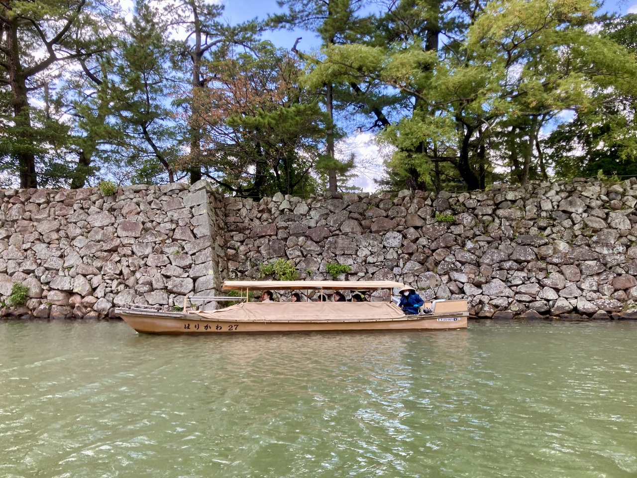 松江城は築城時の堀がほぼそのまま残っているので、必ず乗りたいと思っていました。暑い夏だったので尚更です。