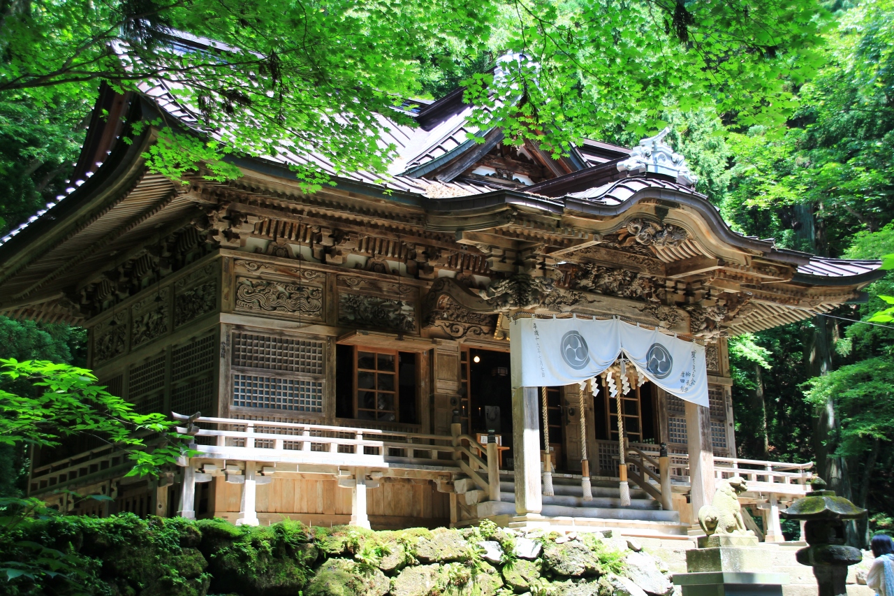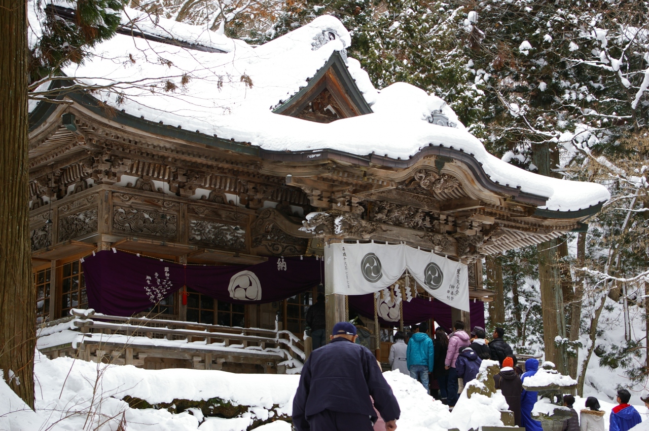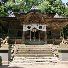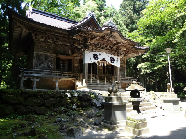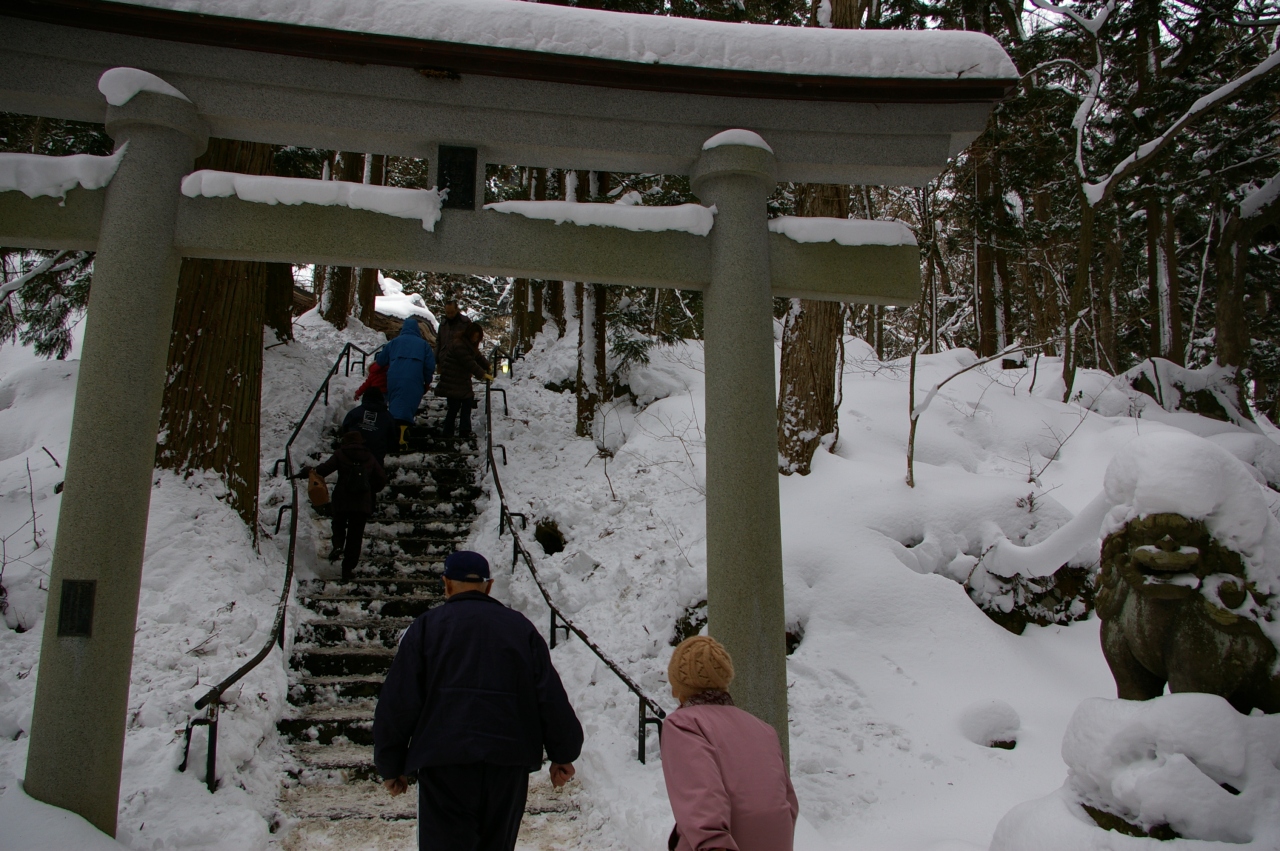 日本武尊(やまとたけるのみこと)と湖の主・南祖坊をまつったところ。鎌倉時代以前から修験僧徒(山伏)の修行場として知られ、江戸時代には南部藩の霊場として発展した。南祖坊の伝説にちなむ鉄のわらじが奉納されている。
