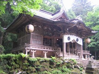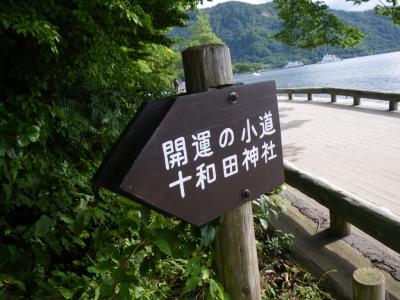 日本武尊(やまとたけるのみこと)と湖の主・南祖坊をまつったところ。鎌倉時代以前から修験僧徒(山伏)の修行場として知られ、江戸時代には南部藩の霊場として発展した。南祖坊の伝説にちなむ鉄のわらじが奉納されている。