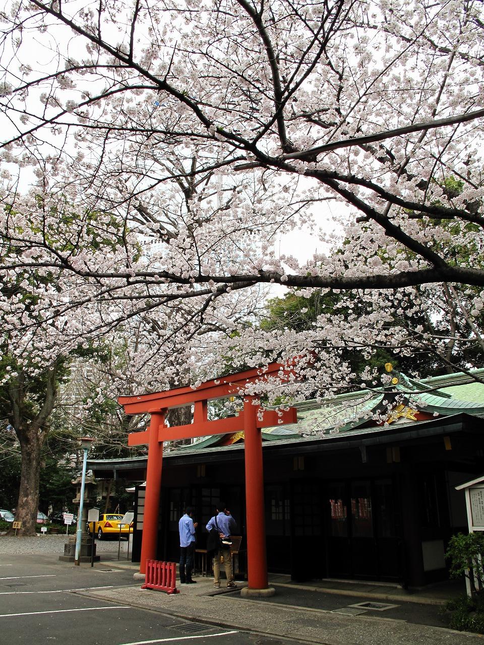 桜と鳥居 コントラストがあざやかな神社
