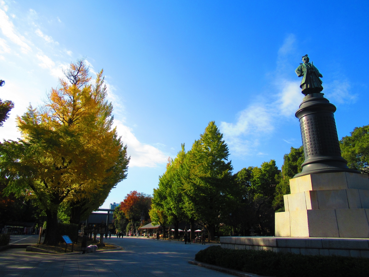 維新に倒れた志士の霊をはじめ、今日まで日本が関係した戦いの戦没者の霊をまつる。桜の名所。