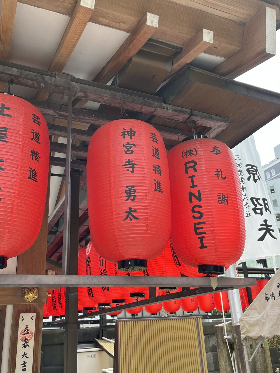 赤坂見附の駅から徒歩5分ほどの場所にあり、出張で泊まったホテルの真ん前に派手な赤い旗がずらりとはためいて目立っていたので、... 続きを読む朝ご飯前に参拝に行ってみました(一度目の参拝)。曹洞宗のお寺とのことですが、七福神めぐりがあったりと神仏混合で、普通に寺社としても、それほど広くない敷地ながら、ぎっしりと見どころがあって、魅力的なお寺でしたが…お守りやお札を買える小さな建物の屋根の下にぎっしりと赤い提灯がぶら下がっていることに、その時はあまり意識がなく、遠目の写真だけ撮って帰ってきて…後日、King&Princeファン(ティアラ)の姪っ子と話していたら、キンプリさんがファーストシングル「シンデレラガール」のヒット祈願に訪れたところで、神宮寺くんが提灯を奉納している場所だと知り、その後の東京出張時に再訪して、神宮寺くんの提灯の写真を撮り、姪っ子がファンの平野くんのメンカラと神宮寺くんのメンカラの念珠ストラップを購入してきました。(もちろん、本殿も奥の院も七福神もお参りしてきました。)神宮寺くん以外にも、山下智久さん、マツコ・デラックスさんや土屋太鳳さん、高橋克典さん、薬丸裕英さん、くりいむしちゅーのお二人などの提灯がずらりと並んでいました。
