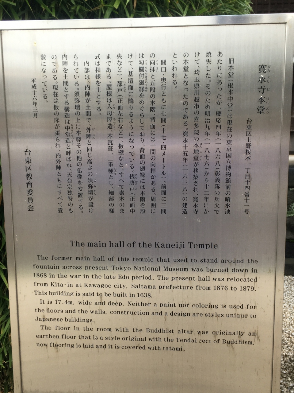 寛永寺根本中堂は登録有形文化財(建造物)です。