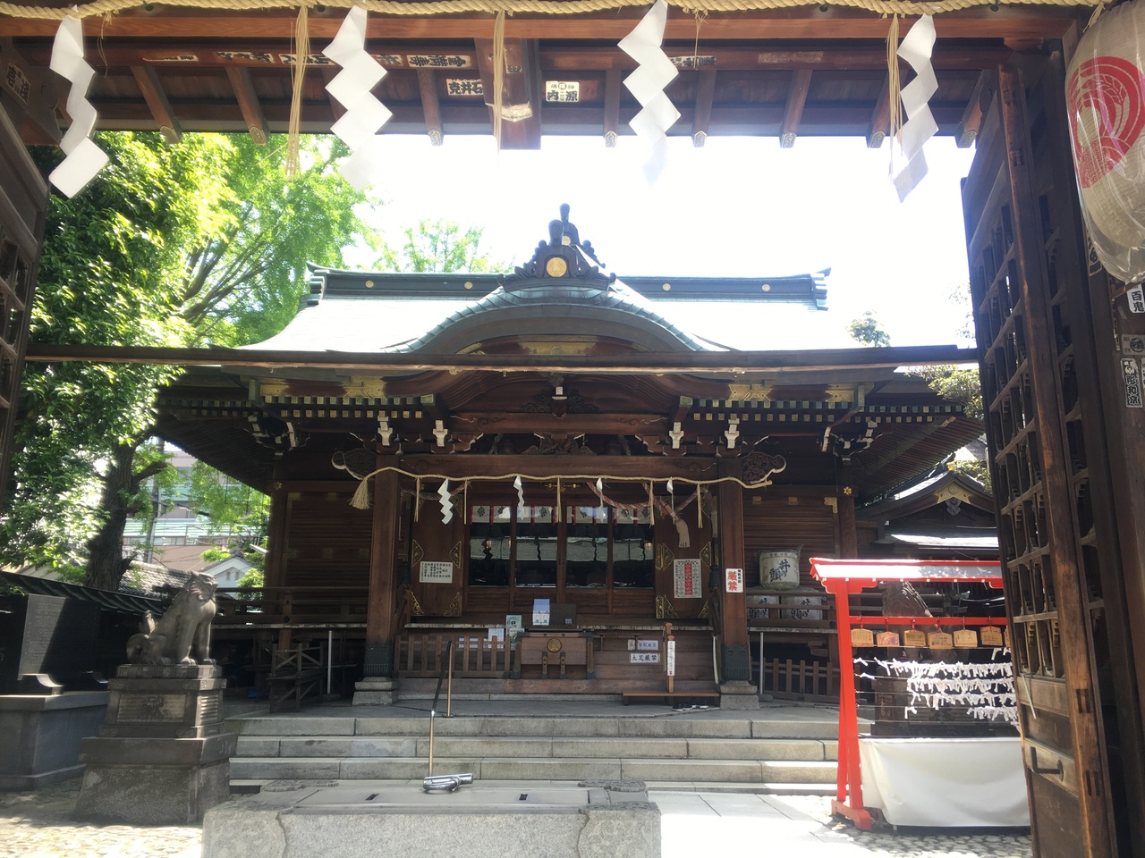 浅草通り沿いにある大きな赤い鳥居が目印です