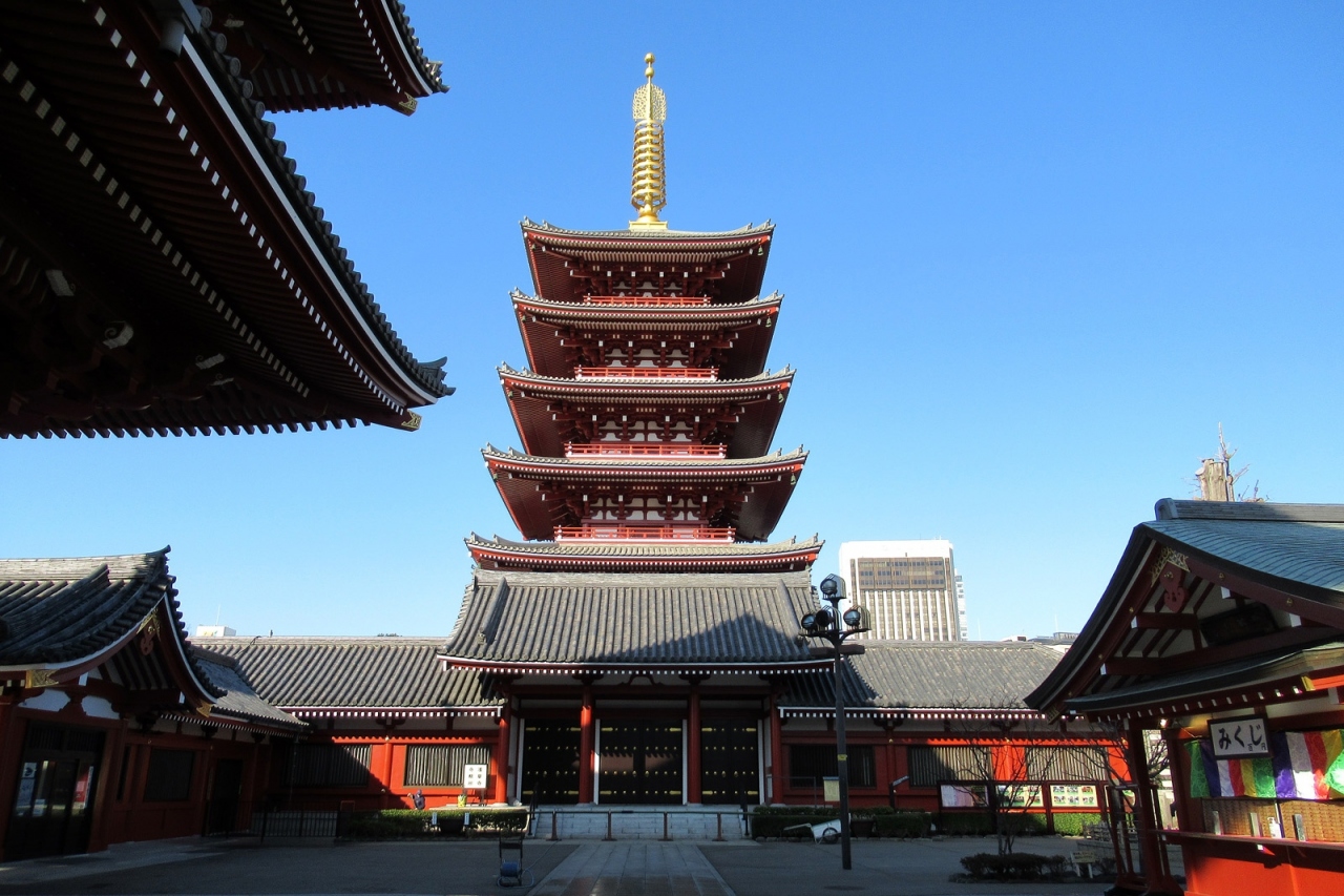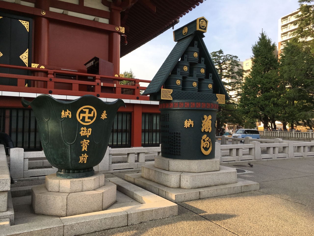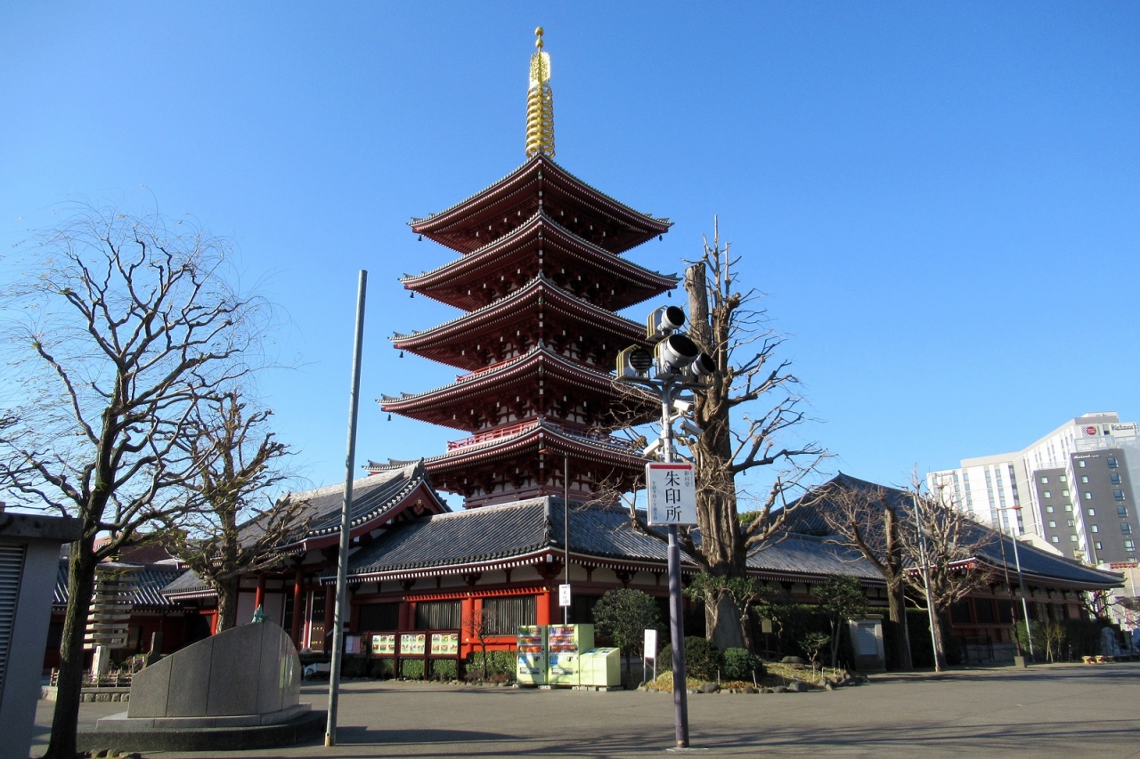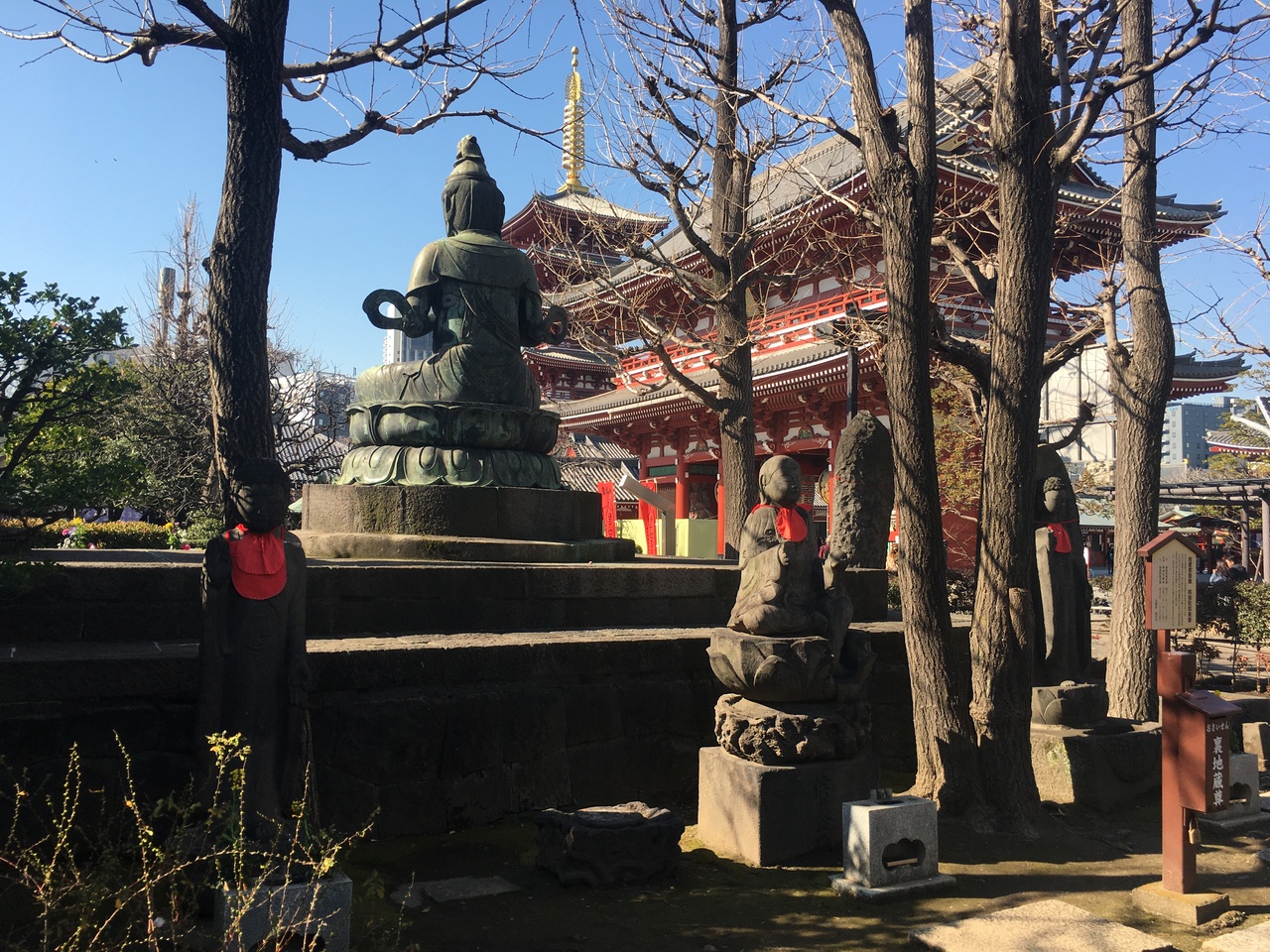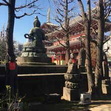 都内最古の寺で、本尊は聖観音菩薩です。元は天台宗に属していましたが第二次世界大戦後独立し、聖観音宗の総本山となりました。観音菩薩を本尊とすることから「浅草観音」や「浅草の観音様」の呼び名で、あらゆる階層から広く親しまれ、年間約三千万人もの参詣者が訪れて民衆信仰の中心地となっています。雷門の大提灯、仲見世が江戸情緒を伝えています。浅草名所七福神(大黒天)