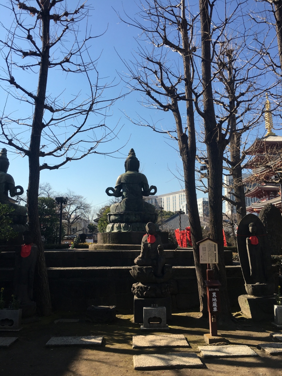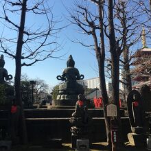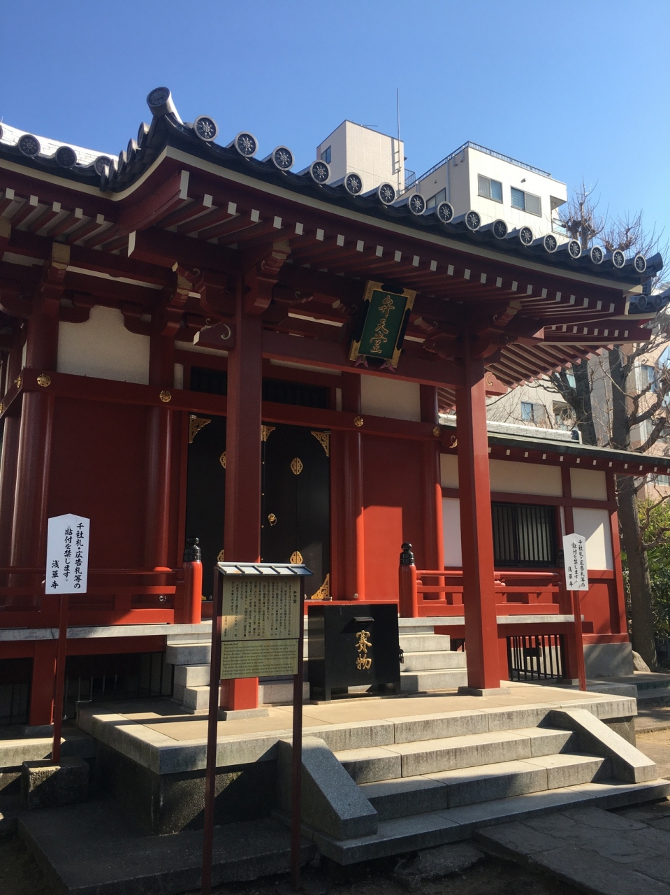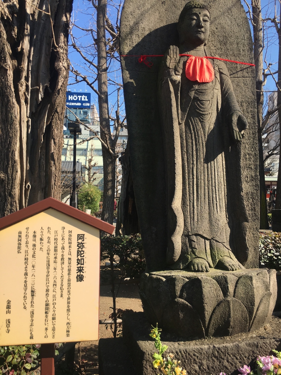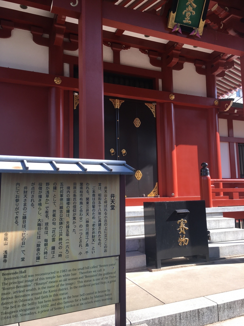 都内最古の寺で、本尊は聖観音菩薩です。元は天台宗に属していましたが第二次世界大戦後独立し、聖観音宗の総本山となりました。観音菩薩を本尊とすることから「浅草観音」や「浅草の観音様」の呼び名で、あらゆる階層から広く親しまれ、年間約三千万人もの参詣者が訪れて民衆信仰の中心地となっています。雷門の大提灯、仲見世が江戸情緒を伝えています。浅草名所七福神(大黒天)